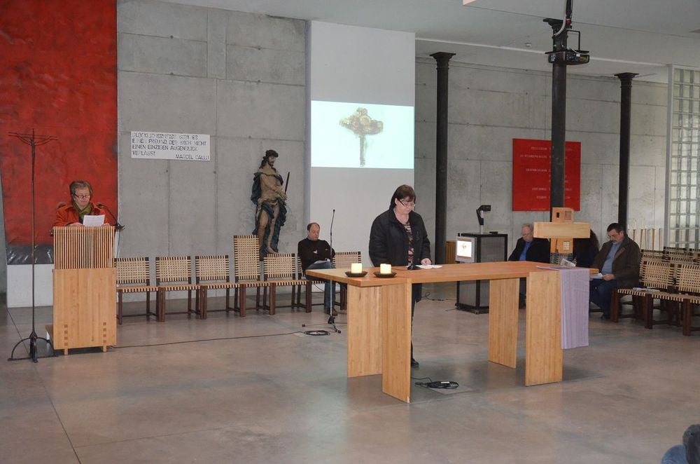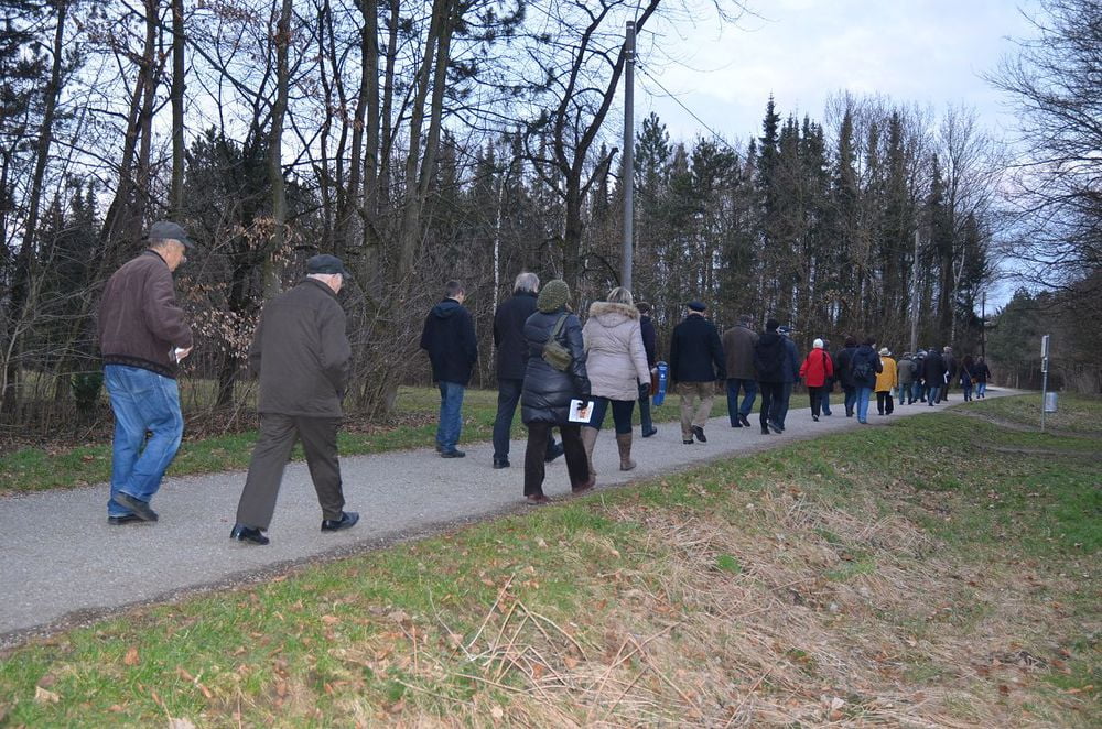 "Friedensweg durch den Süden von Linz" (Märtyrerweg) am 12. März 2015 - Station über die "Bindermichler Märtyrer" im Wasserwald