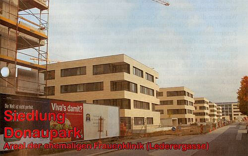 2006 wird die alte Landesfrauenklinik in der Lederergasse abgerissen und auf diesem großen Areal, Donaupark genannt, Wohnungen für rund 400 Familien, Geschäftslokale und Büros in der Gruberstraße, sowie ein großer Kindergarten in der Holzstraße errichtet.