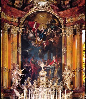 Die östliche Breite des Hauptschiffes, dort wo sich der Hochaltar befindet, geht auf den spätgotischen Neubau von 1448 zurück (die Zeit von Friedrich III.).