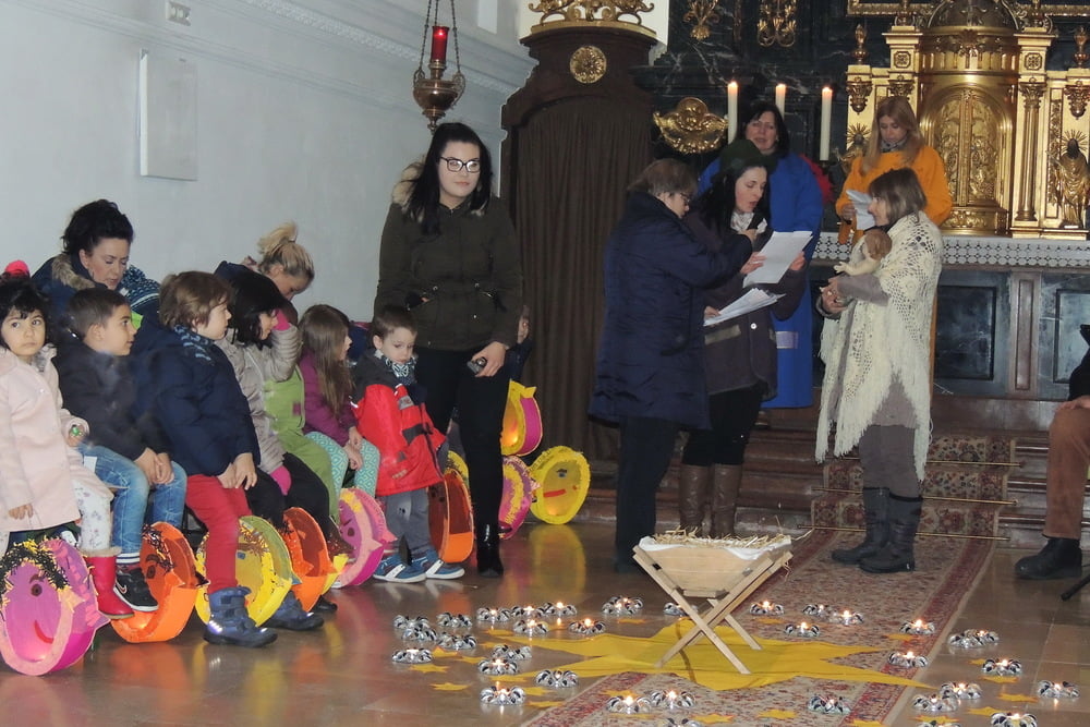 Unser Kindergarten bereitete eine wunderschöne Feier vor, bei der die Geschichte vom greisen Simeon im Tempel dargestellt wurde. Pfarrer Prskalo leitete die Feier und segnete jedes Kind und jeden Erwachsenen.