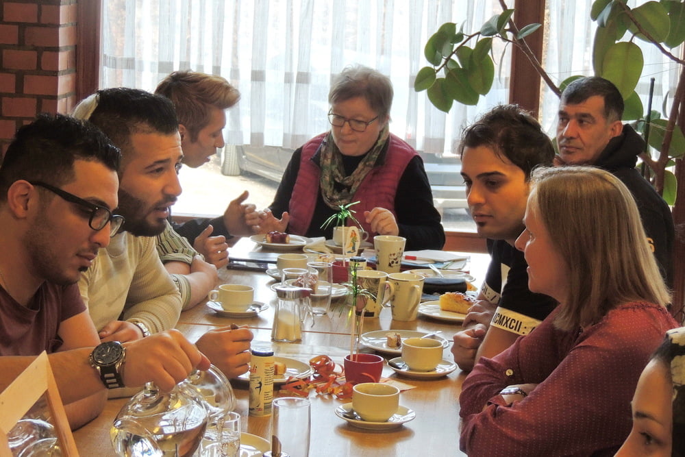 Um den Austausch konkret zu pflegen, initiierten unser Netzwerk Menschheitsfamilie ein Sprachcafé, das zurzeit ein Mal monatlich im Pfarrbuffet stattfindet. In einer ungezwungenen Atmosphäre wird miteinander Deutsch gesprochen und können Kontakte geknüpft werden.