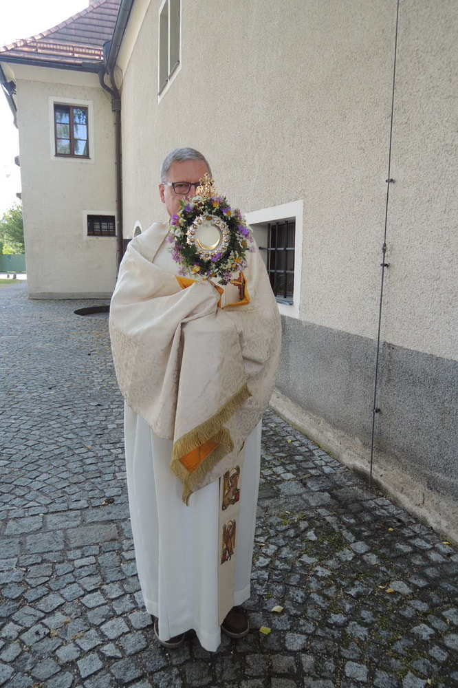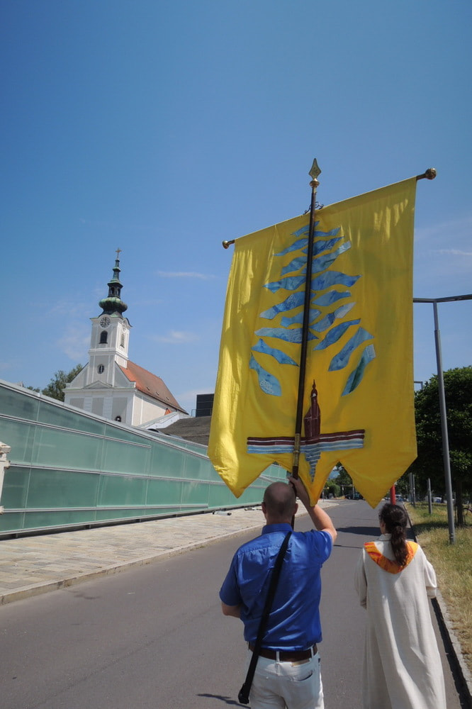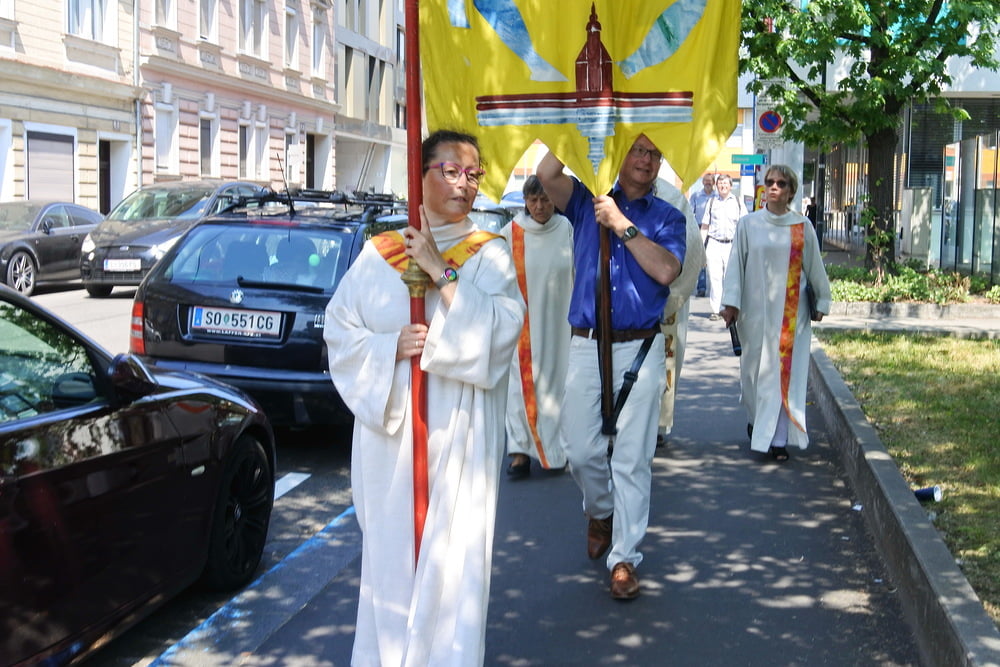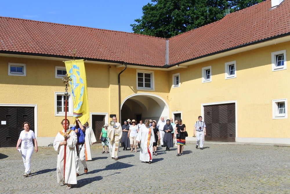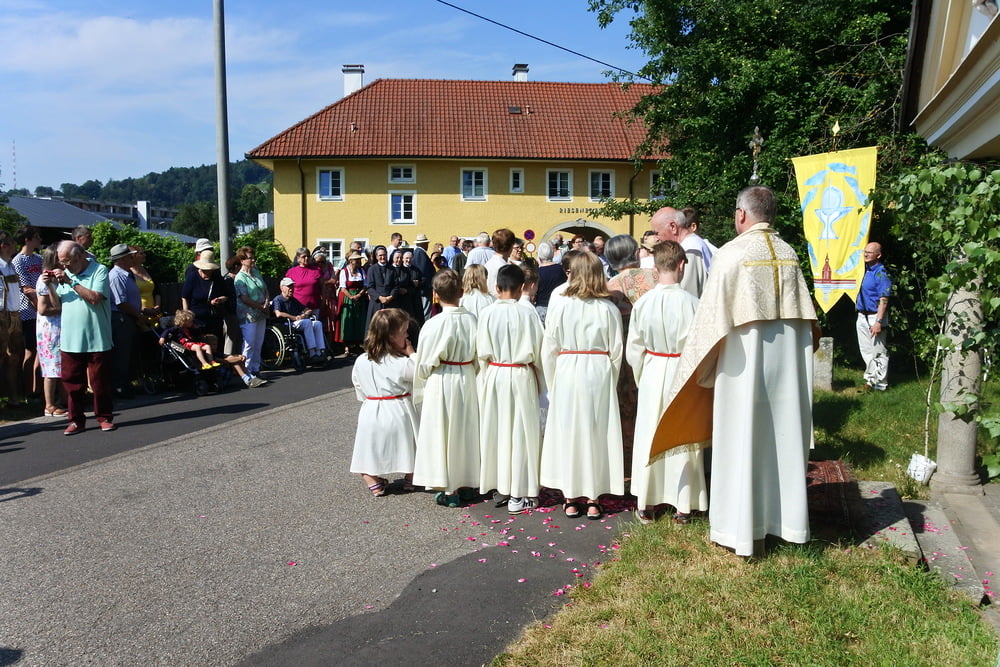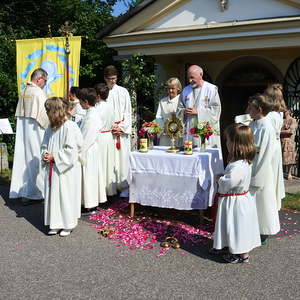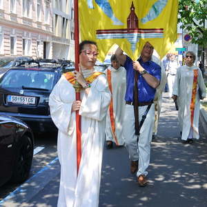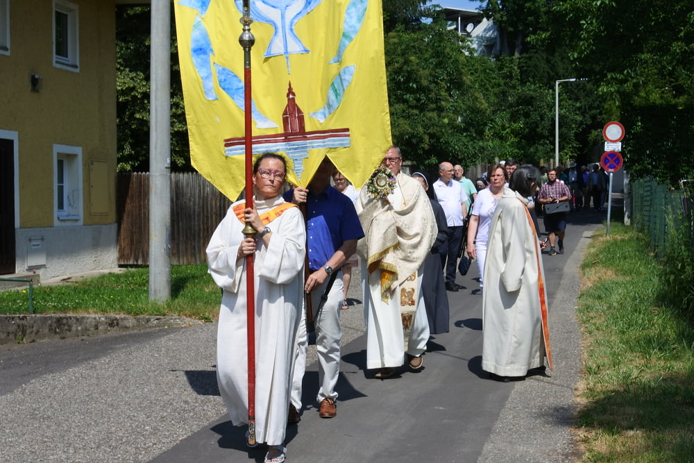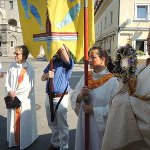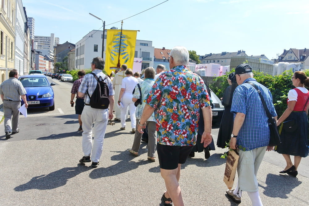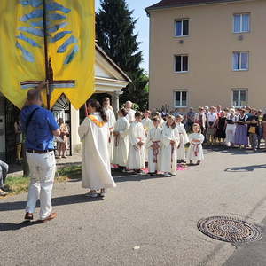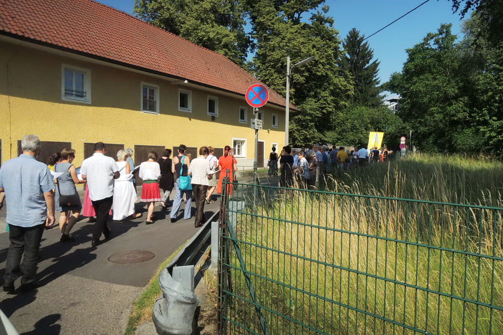 Prozession zur Riesenederkapelle, Andacht, weiter zur Pfarre St. Leopold - Messfeier - Prozession zum Hillingerheim - Andacht - und weiter zu unserer Pfarrkirche.