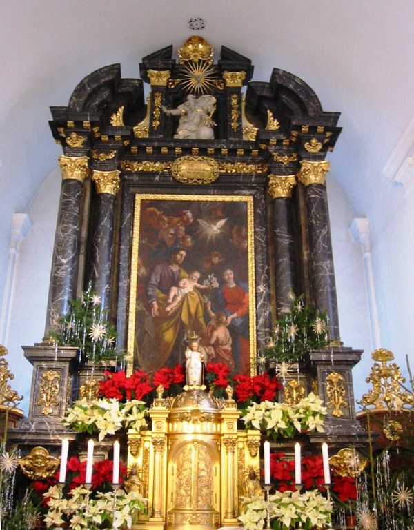 Der Hochaltar wurde 1790 aus der Xavierikapelle beim Jesuitenkollegium in die Pfarrkirche transferiert.