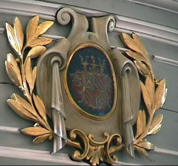 Die hölzerne Orgelempore an der Westseite ist geschwungen und trägt in der Mitte eine vergoldete Holzkartusche mit dem Wappen der Schifer-Sonderndorf.