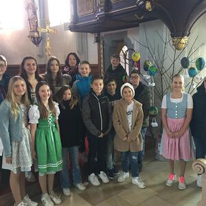 14 Firmlinge lernten in der Firmvorbereitung über Gemeinschaft, Vertrauen, Solidarität und Sakramenten. Für den Vorstellgottesdienst wurde gebastelt und gebacken. Beim Besuch im Therapie- und Förderzentrum in Pramet wurde ein beachtlicher Spendenbetrag übergeben. ?