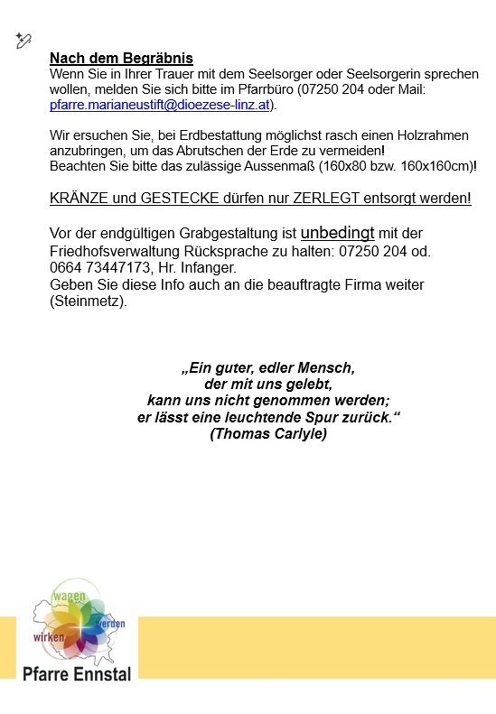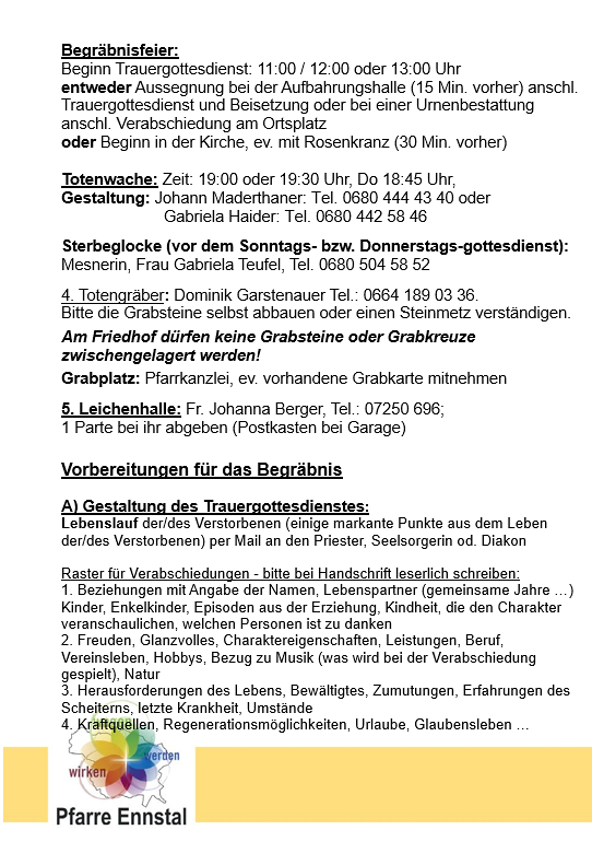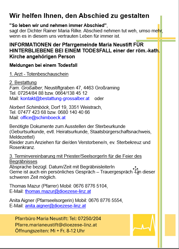 Bei einem Todesfall einer der röm.-kath. Kirche angehörigen Person kontaktieren Sie bitte: