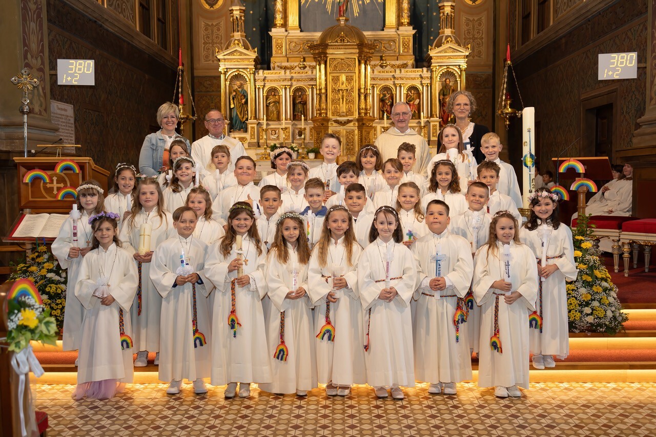 Auch heuer feierten wieder zahlreiche Erstkommunionskinder ihr großes Fest. “Wie ein bunter Regenbogen – verbunden mit Jesus” hieß unser großes Motto. Es war ein sehr feierliches Fest.
