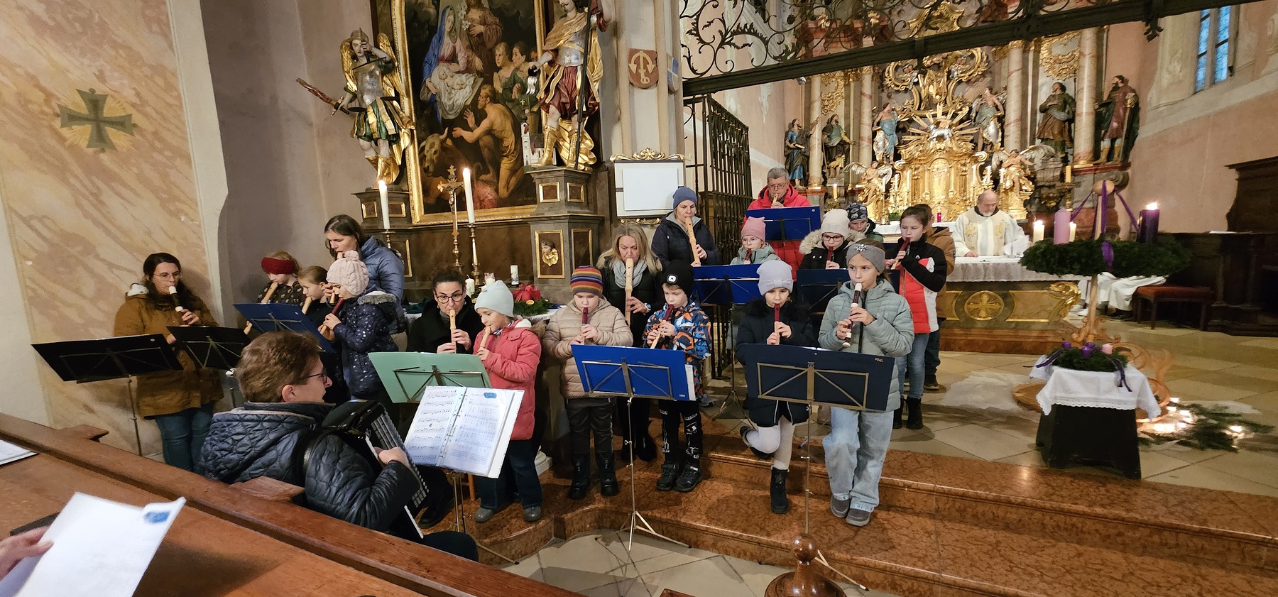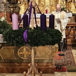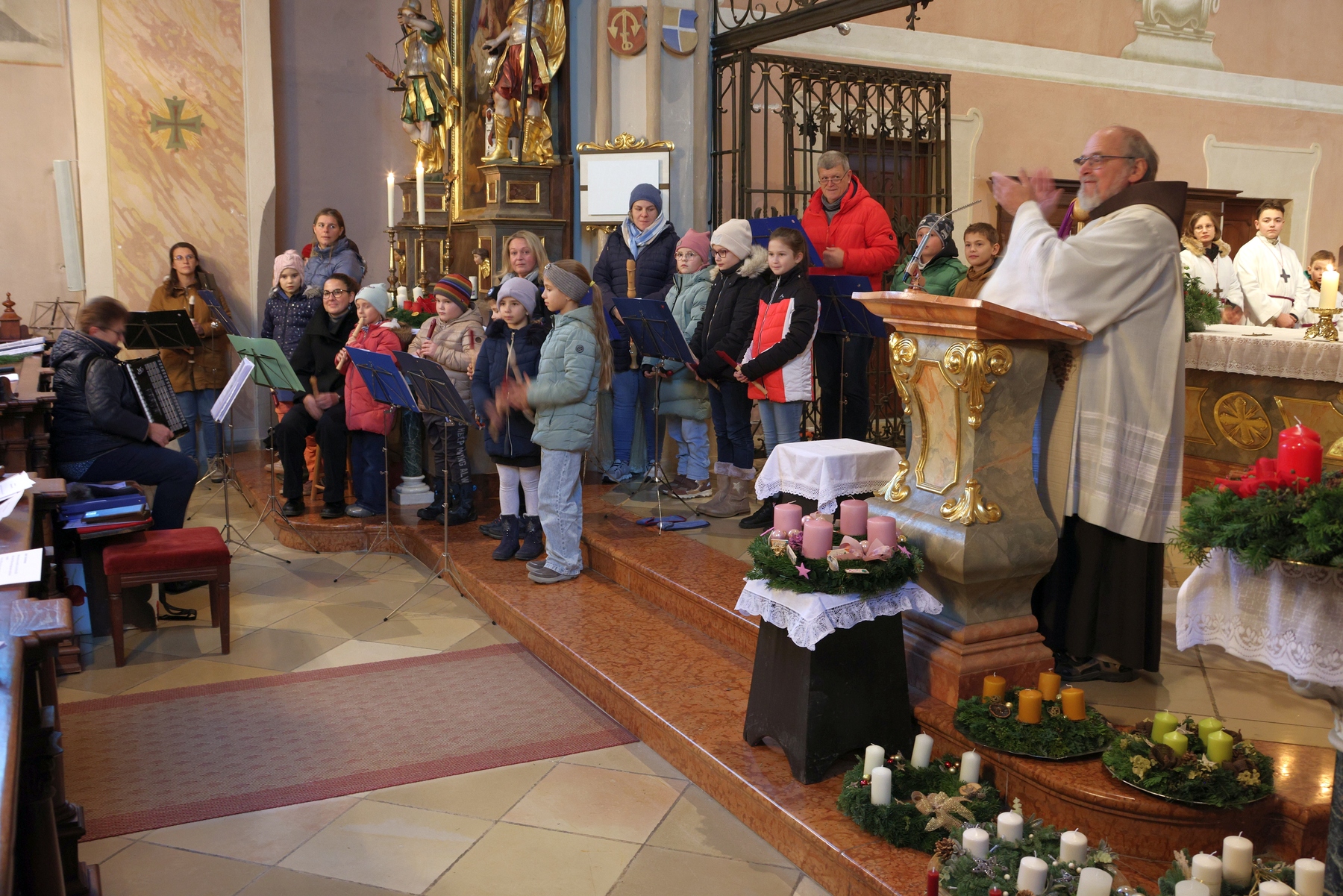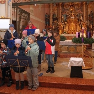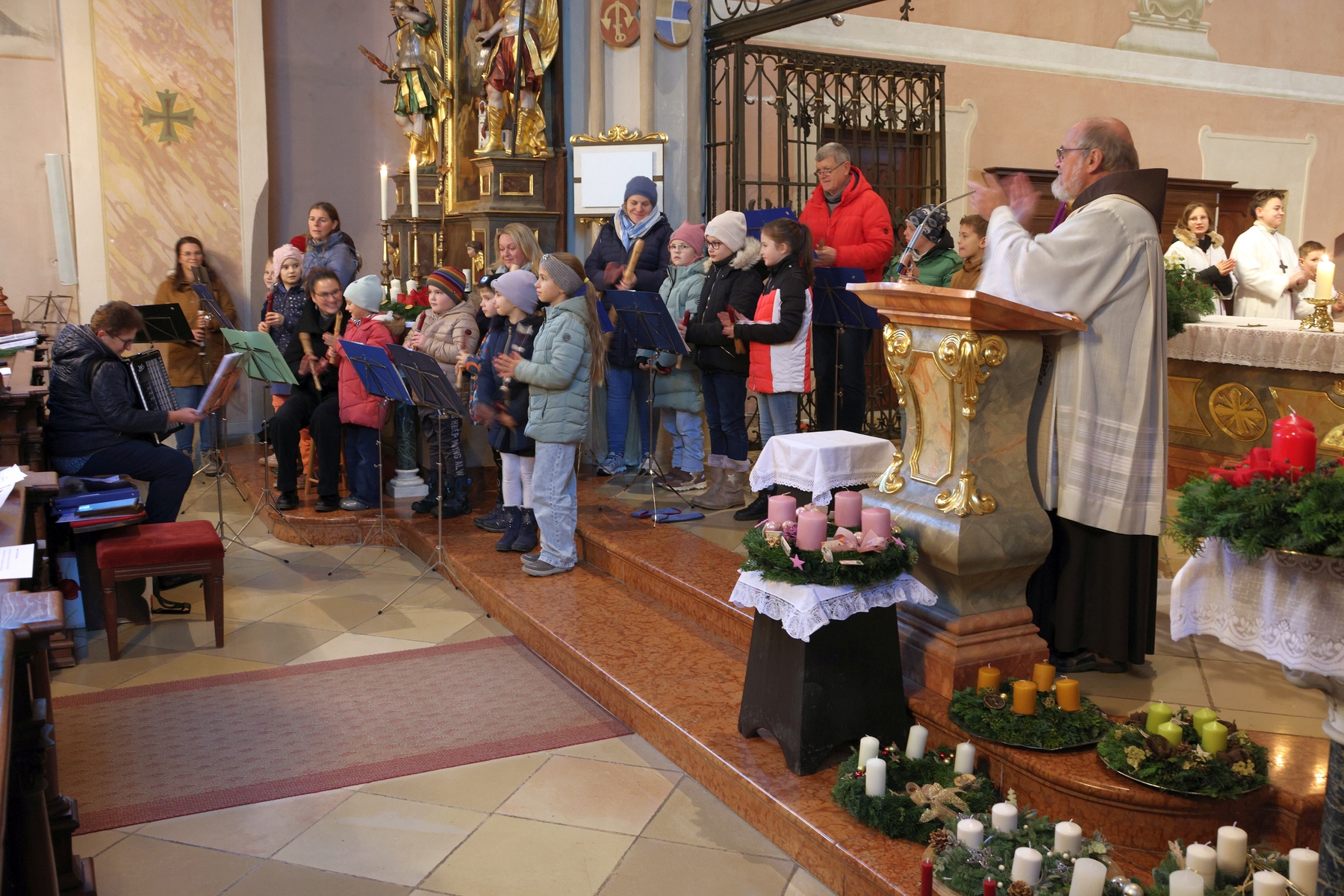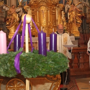 Die Adventkranzweihe der KFB war wieder sehr gut besucht. Pater Werner leitete die Andacht und Maria Gschwendtner mit ihrer Flötengruppe begeisterte die Besucher.