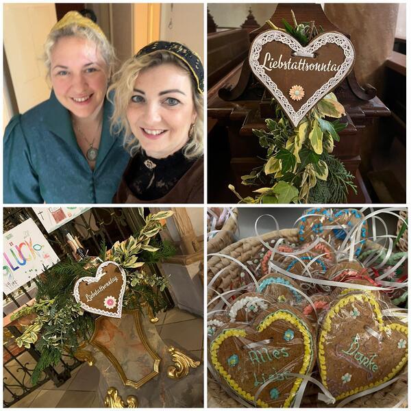 Die katholische Messe wurde gemeinsam mit Pfarrer Klaus Dopler gestaltet. Der katholische Kirchenchor sang die wunderschöne deutsche Bauernmesse unter der Leitung von Gertraud Bogner. Bei Kaffee und Kuchen gab es anschließend ein gemütliches Beisammensein im Pfarrheim. Die 400 Liebstattherzen waren der Renner.