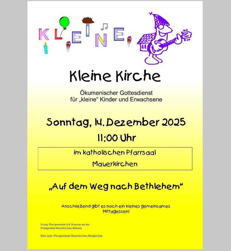 Vorgestern (am 14. Dezember) war es wieder Zeit für unsere KLEINE KIRCHE im röm.-kath. Pfarrsaal!