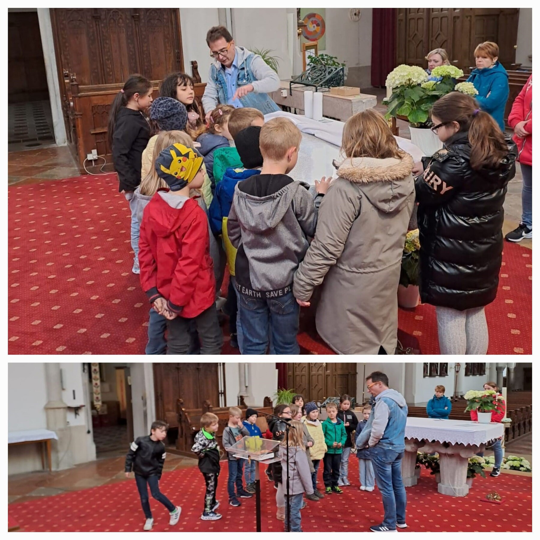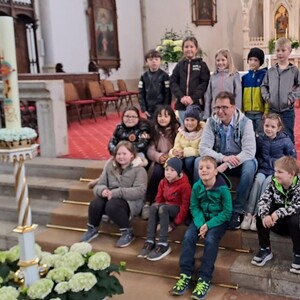 Bei einer Kirchenführung mit Pfarrer Gert Smetanig bekamen die Erstkommunionkinder in der Pfarrkirche Mauerkirchen einen Einblick über das bevorstehende Sakrament der Erstkommunion.
