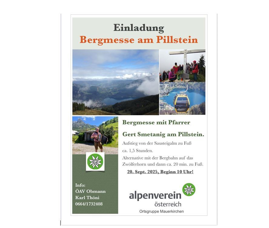 EINLADUNG ZUR BERGMESSE am Pillstein