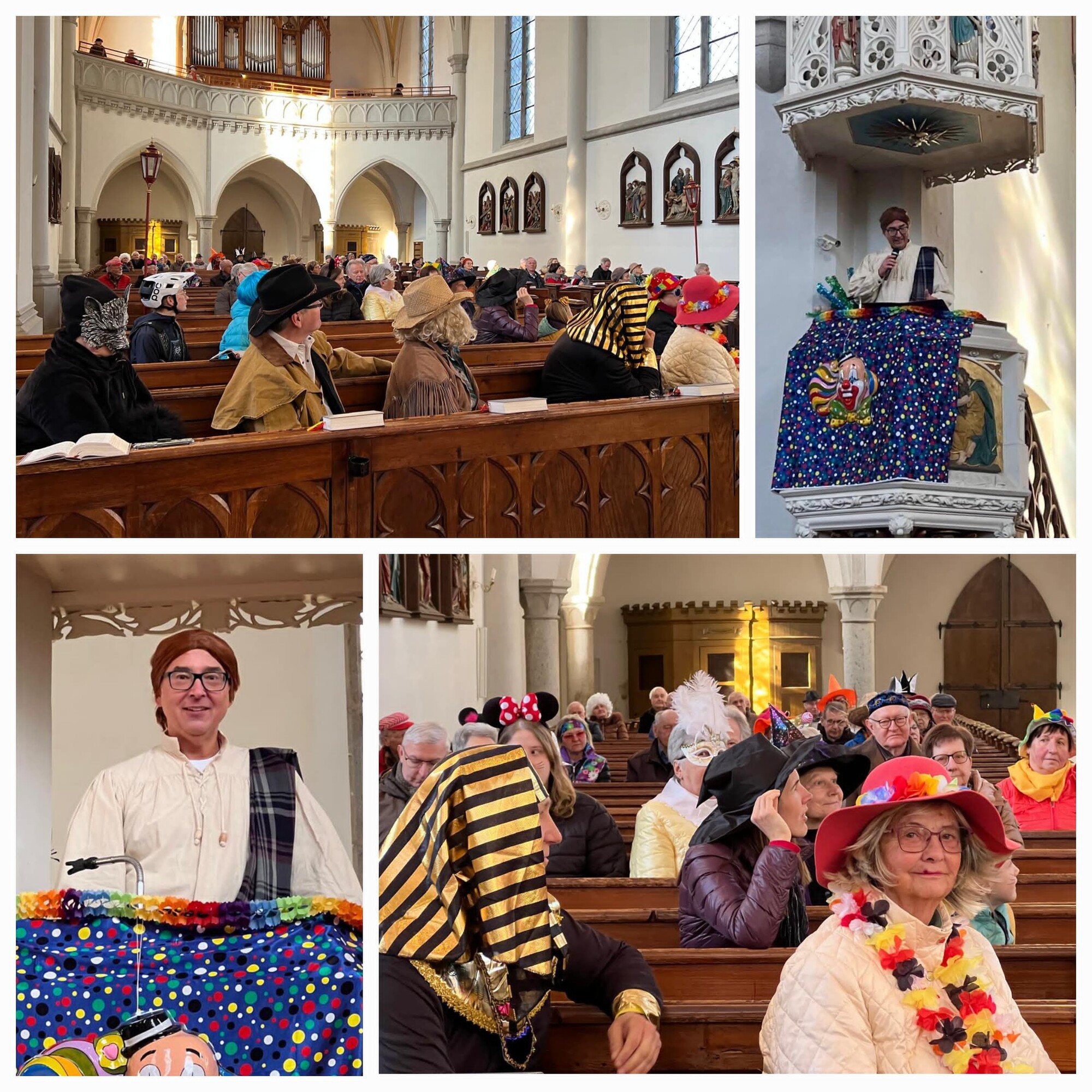 Beim Faschingsgottesdienst waren alle Faschingsfreunde eingeladen, sich zu verkleiden. Pfarrer Gert Smetanig hielt seine Faschingspredigt, nach der Messe erhielten die kostümierten Kirchenbesucher einen Faschingskrapfen