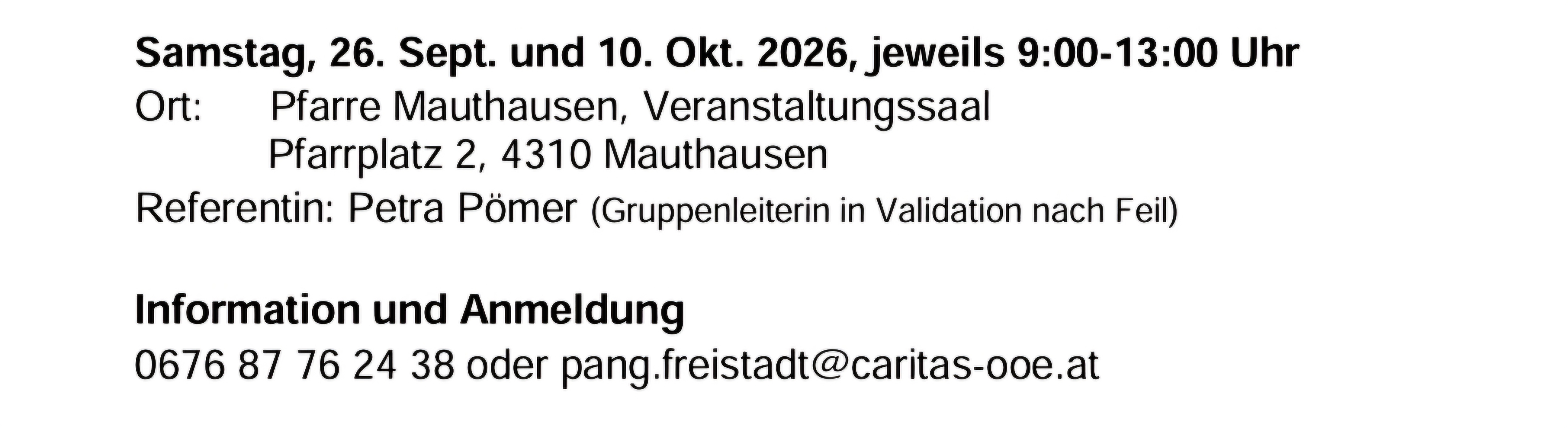 Die Kursreihe für Angehörige von Menschen mit Demenz findet am 26. 9. und 10. 10. im Pfarrheim Mauthausen jeweils von 9.00 bis 13.00 statt.