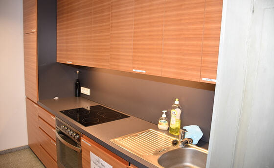 Ausstattung: Kühlschrank, E-Herd, Besteck, Teller, Gläser, Häferl, Töpfe, Kaffeemaschine, Wasserkocher, ...