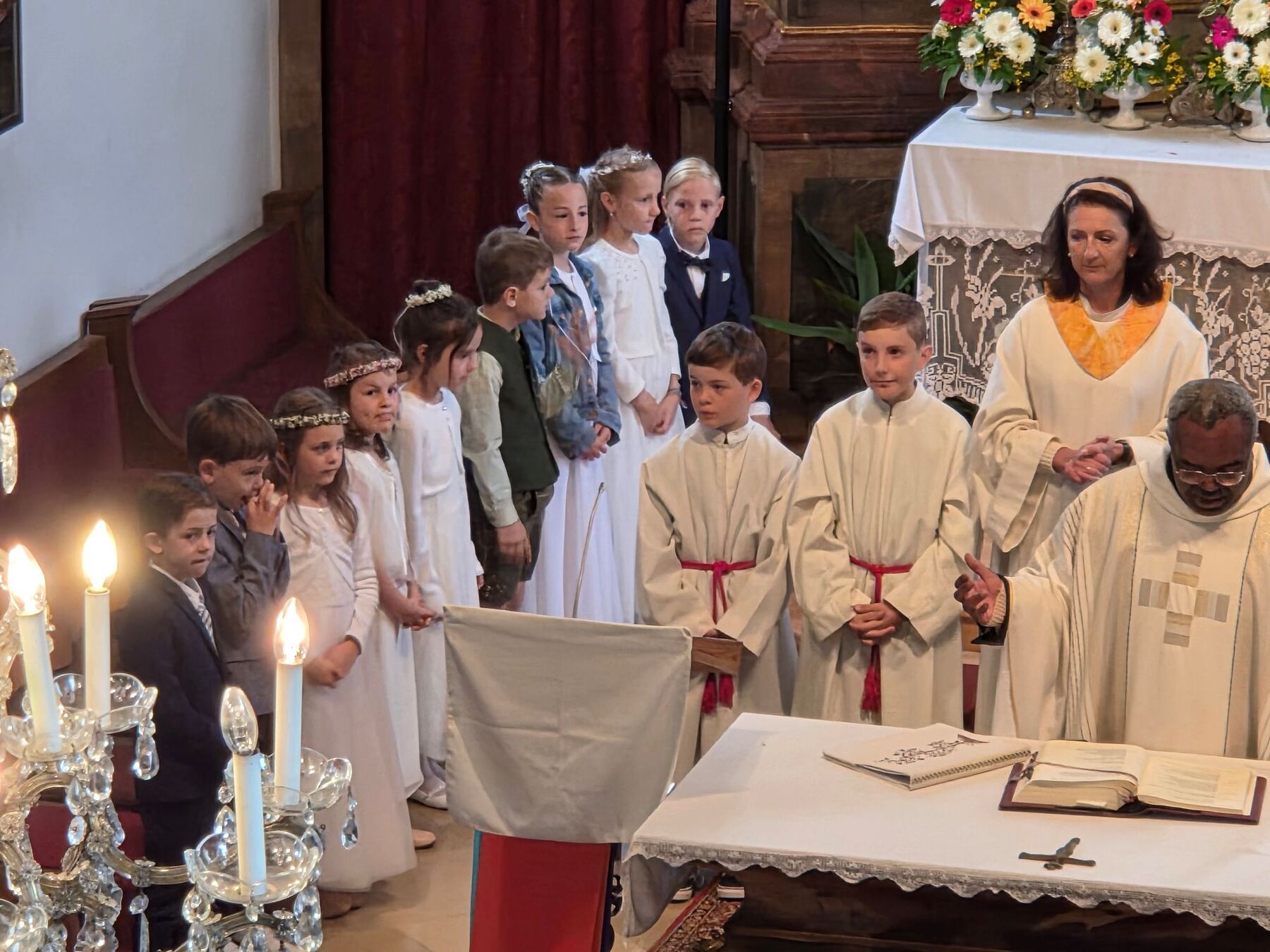 Gut auf die Heilige Kommunion vorbereitet, empfingen die Kinder der 2. Klasse Volksschule das heilige Sakrament in unserer Pfarrkirche von Pfarradm. MMag. Anthony Echechi.