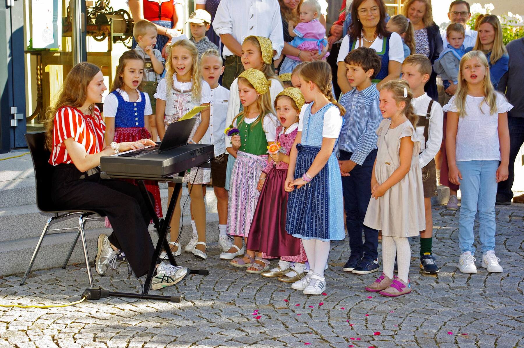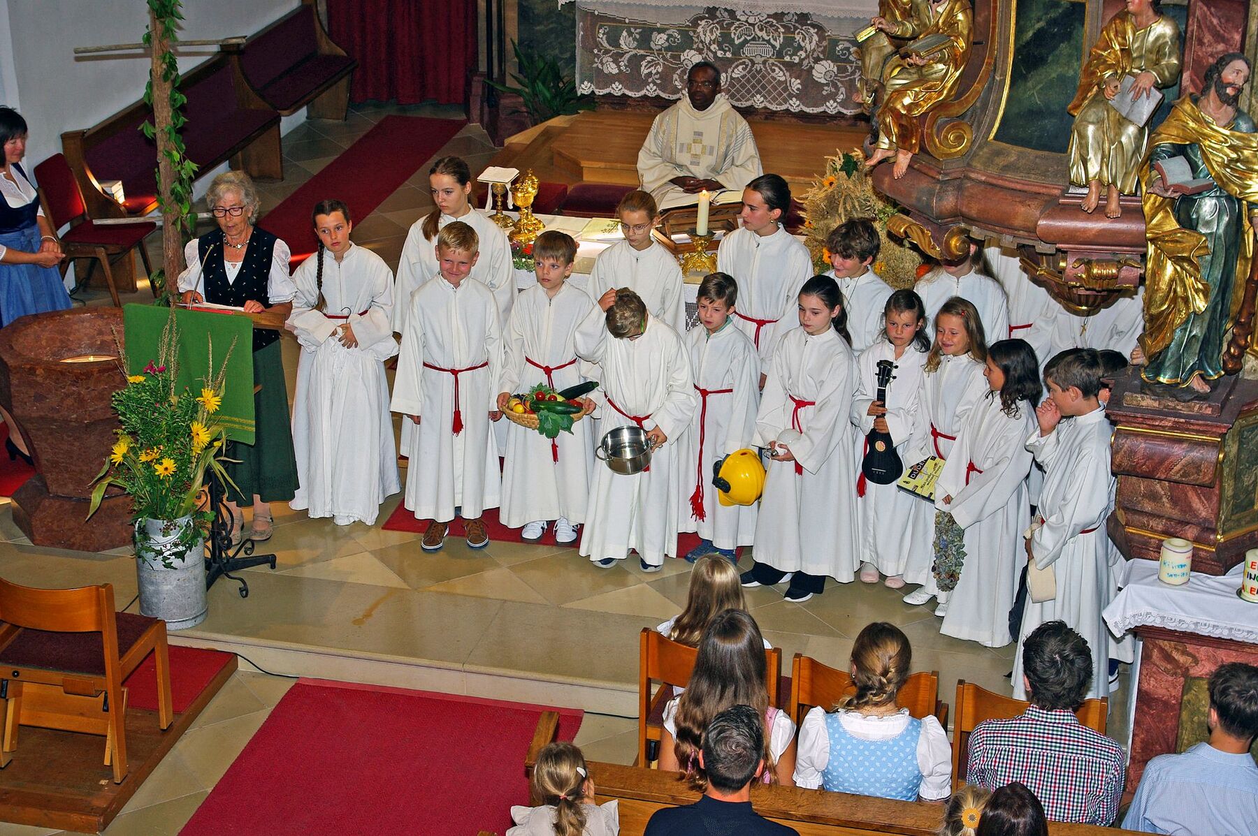 Im Anschluss spielte die Musikkapelle die BesucherInnen in die Kirche. Dort sagten auch die MinistrantInnen Danke für Vieles aus dem täglichen Leben.