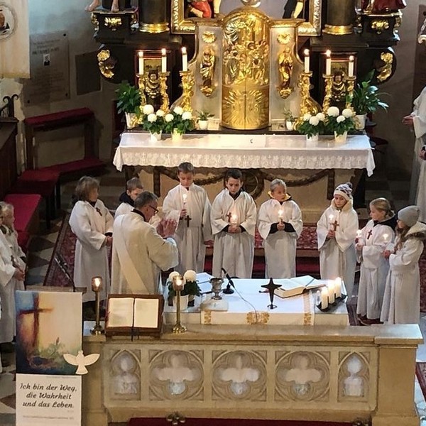 Im Rahmen des Gottesdienstes zu Christkönig wurden neun neue Ministrant:innen aufgenommen.