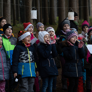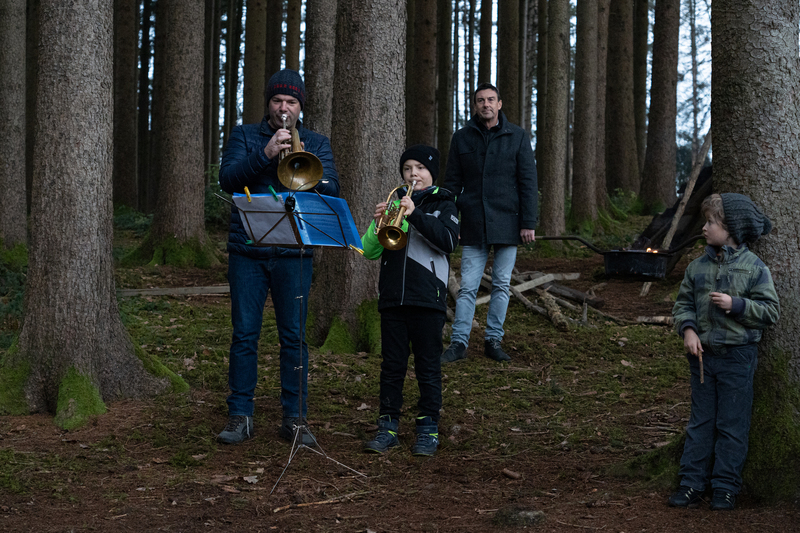Das Spiegel-Team feiert das 20 jährige Bestehen einer Spiegel-Gruppe in Mehrnbach mit einer Waldweihnacht.