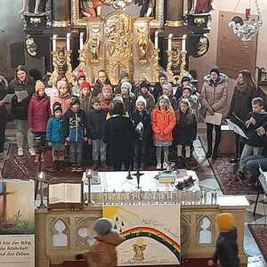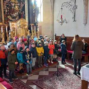 Die feierliche Vorstellung der Erstkommunionkinder wurde von den Hummelkindern, dem "Mädls-Trio" und einem Flötenensemble gestaltet.