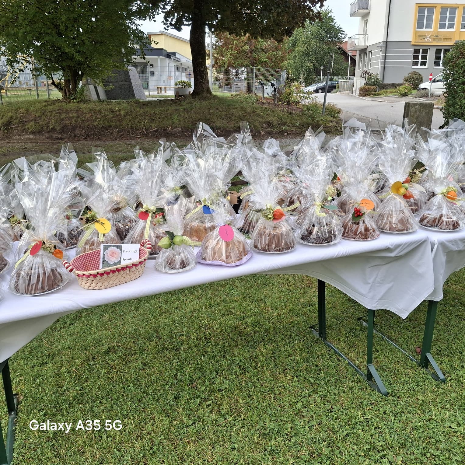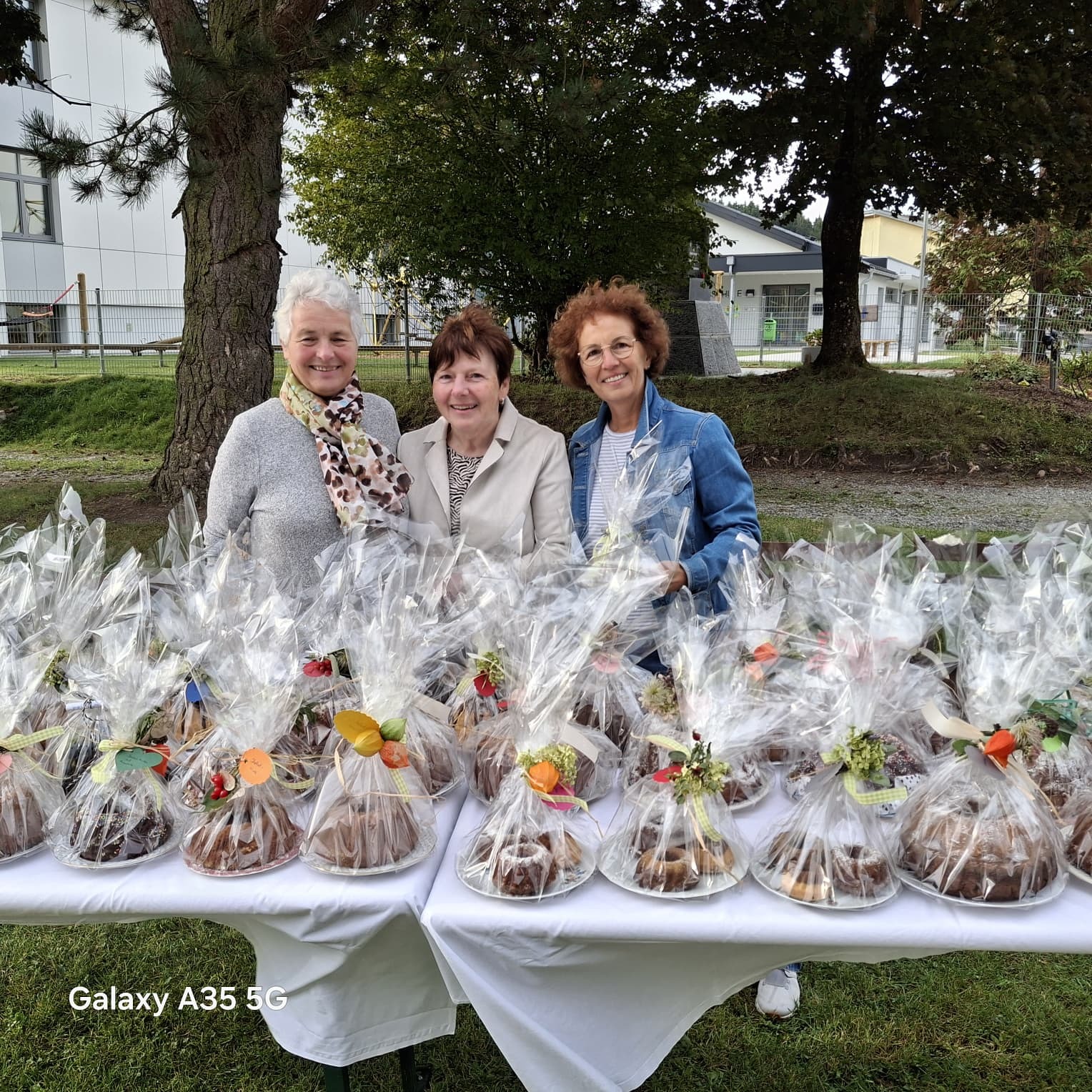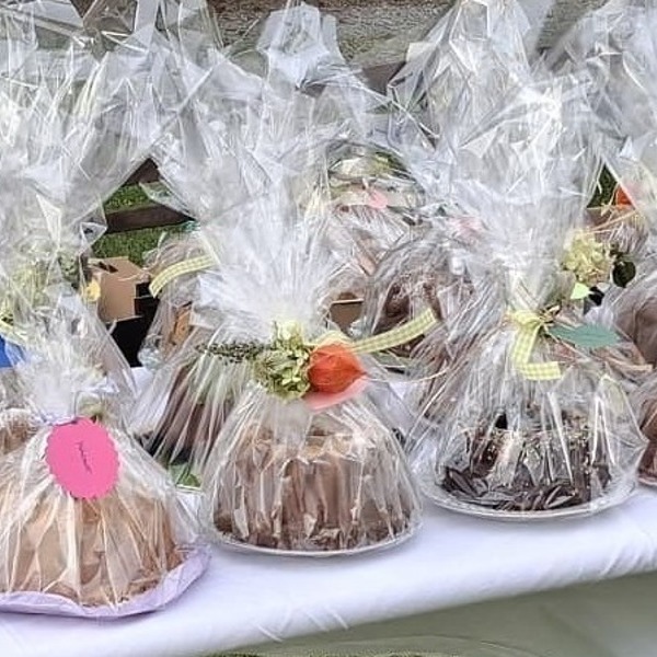 Die Kirchgänger konnten schön verpackte, unterschiedlich große Gugelhupf gegen eine freiweillige Spende erwerben.
