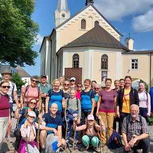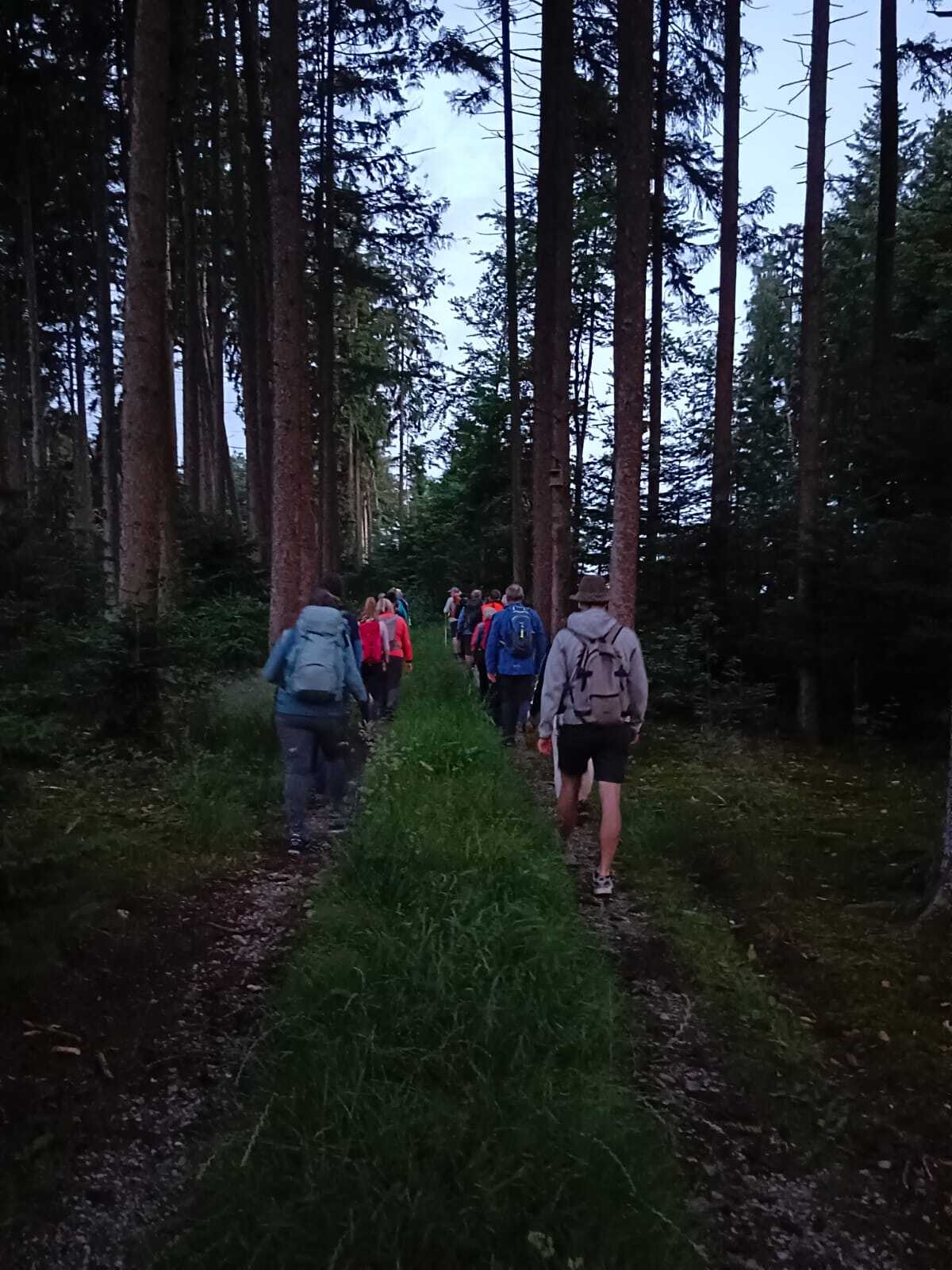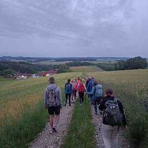 Um 4 Uhr machte sich die Gruppe nach einem kurzen Morgenimpuls auf den Weg. Nach Zwischenstopps in Mettmach und Hönhart und Gedanken und Impulsen bei den am Weg liegenden Kapellen, erreichte die Gruppe um 10:30 Maria Schmolln.