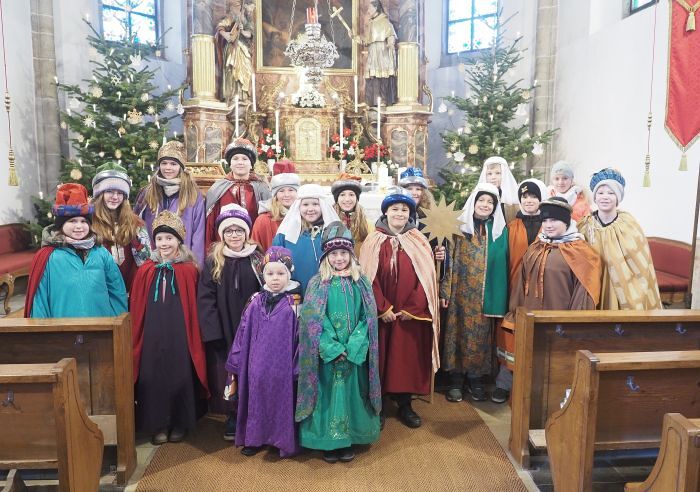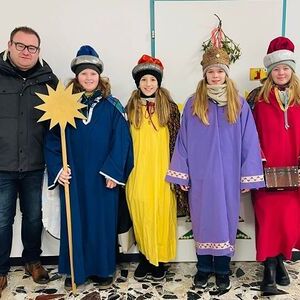 28 Kinder machten sich bei windigem Schneegestöber mit ihren Begleitern auf den Weg um Gottes Segen in die Häuser zu bringen.