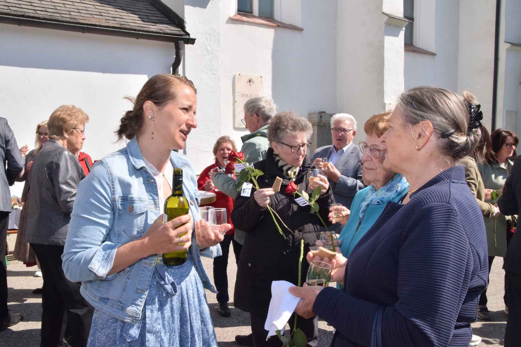 Nach dem Gottesdienst versammelten sich die Mitfeiernden zur Agape vor der Kirche, bei der Brot und Wein geteilt wurden. Diese Gemeinschaftsfeier unterstrich die Bedeutung der Zusammenarbeit und des Miteinanders in der Pfarrgemeinde Mitterkirchen.
