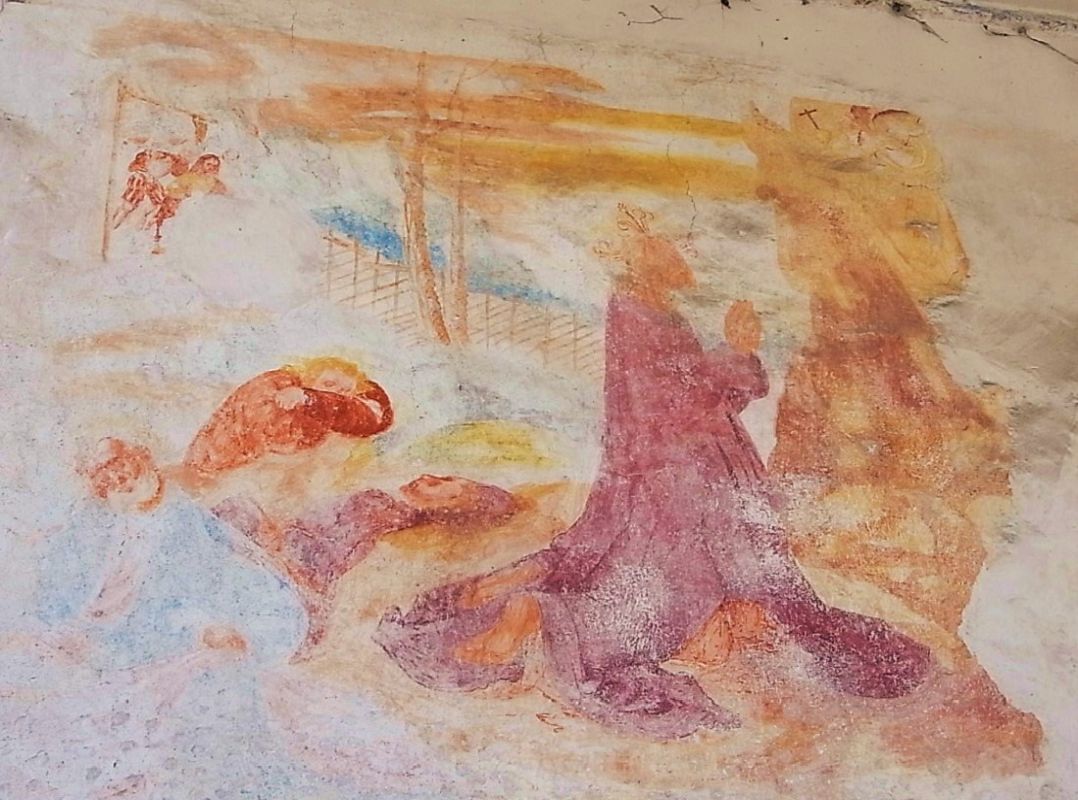 Bis vor kurzem waren also an der Fassade die vier aufgedeckten Fresken von 1516 zu sehen, im Inneren die Kreuzgruppe und die beiden Bilder von der Außenwand an den Seitenwänden, deren Fresken des 19. Jahrhunderts offensichtlich übertüncht worden waren. Von den barocken Tafeln scheinbar keine Spur.