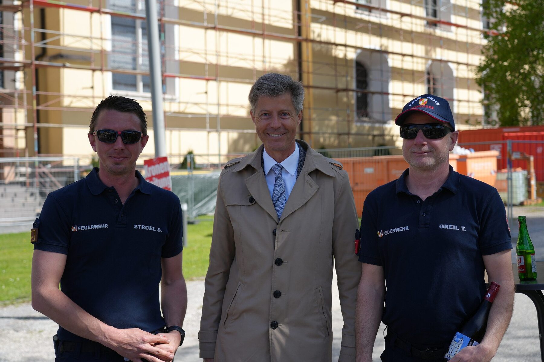 Am Sonntag nach der 10 Uhr Messe segnete Pfarrer Reinhard Bell bei strahlendem Frühsommerwetter die Baustelle auf luftiger Höhe. Ein herzliches Danke an die Freiwillige Feuerwehr Mondsee, die das mit ihrem Hubrettungsfahrzeug ermöglicht hat. Wir alle hoffen auf einen guten und vor allem unfallfreien Bauverlauf.