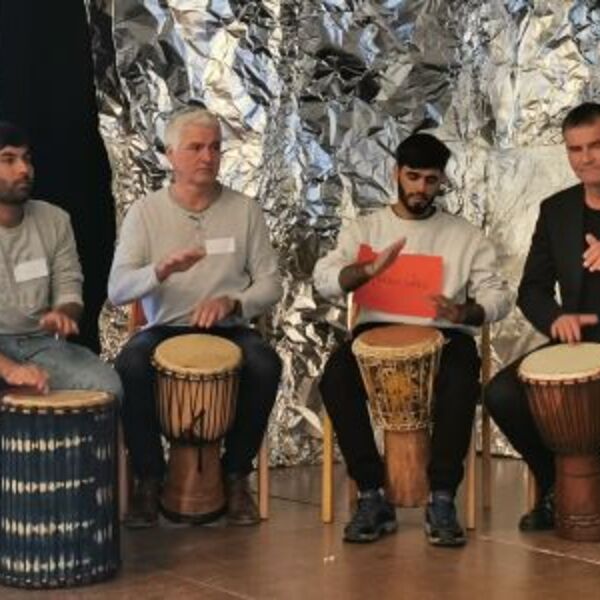 Anders als in den Vorjahren war diesmal die ukrainische Gruppe eher klein, dafür kamen viel mehr Syrer, Afghanen, Iraner und Palästinenser als in den letzten Jahren. Helga Gumplmaier hat begrüßt, moderiert und eine Überraschung aus dem Hut gezaubert: Mit einer Spende von Mondseeland hilft eV hat uns die Musikpädagogin Renate Schneidhofer aus Salzburg in das Trommeln eingeführt. Renate hat etwa 20 große und kleine Trommeln, Rasseln und andere Perkussionsinstrumente mitgebracht und uns alle gemeinsam zum Trommeln animiert. Auch der Hausherr, Pfarrer Reinhard Bell, schlug die Trommel. Wie eine Mitwirkende sagte „Es war für mich unglaublich schön, das Strahlen der Menschen beim Trommeln zu sehen und die Verbindung und das Miteinander im Saal zu spüren. Diese Erfahrung wird sicher in den Herzen positiv abgespeichert und die Menschen begleiten, egal wohin sie letztlich auch gehen werden.“