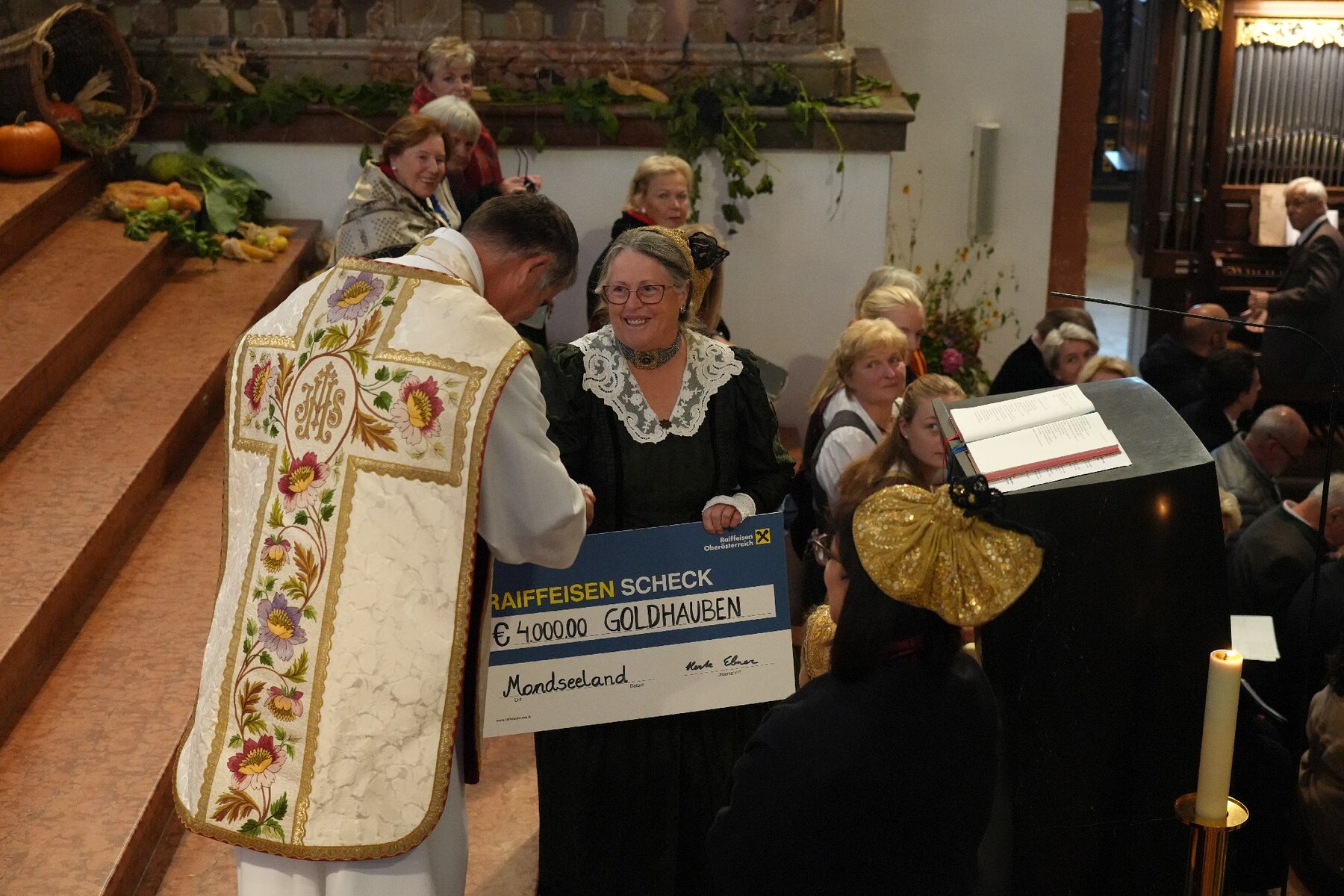 Im Rahmen der Festmesse übergab die Goldhaubengruppe Mondseeland unserem Pfarrer Mag. Reinhard Bell eine Spende von € 4000 für die Erneuerung des Daches der Basilika. Ein aufrichtiges Vergelt's Gott für diese Spende!
