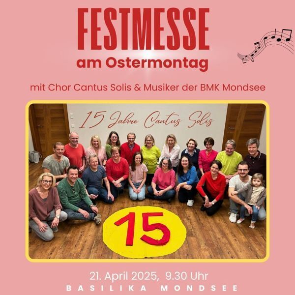Im Namen der Pfarre Mondsee gratulieren wir Cantus Solis ganz herzlich zum Jubiläum und wünschen dem Chor weiterhin alles Gute und Gottes Segen!