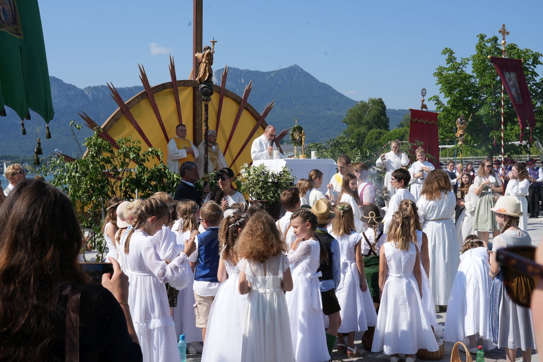 Nach der Messfeier mit Kommunion folgte die Prozession zum wunderschön geschmückten Altar am See.