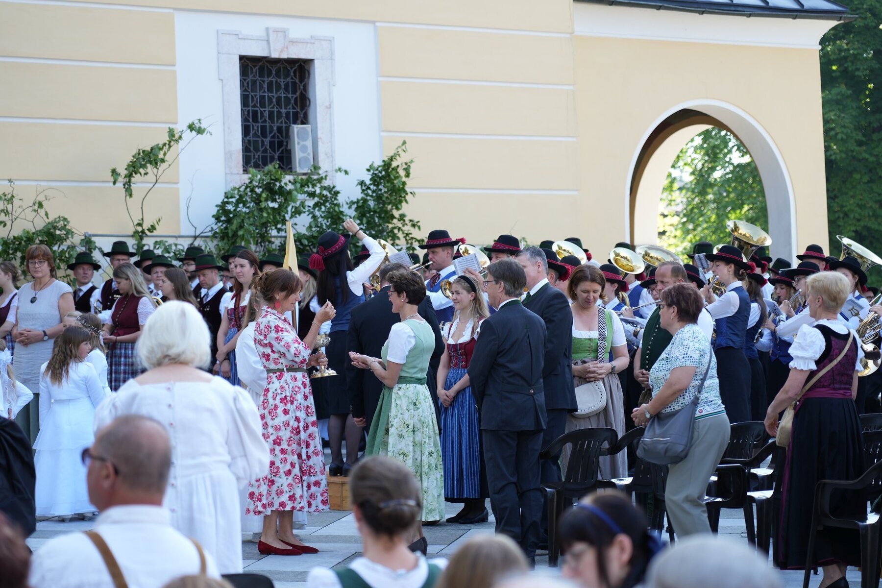 Gekommen waren auch alle Feuerwehren des Abschnitts Mondsee mit ihren großen Jugendgruppen. Sowie viele weitere Vereine, unter ihnen die Mondseer Prangerschützen, die Alttrachten, die Goldhaubengruppe, der Kameradschaftsbund und die Zünfte, die wieder ihre Fahnen bei der Prozession trugen. Die Messe und die Prozession wurden von der Bürgermusikkapelle Mondsee und der Musikkapelle Tiefgraben musikalisch gestaltet.