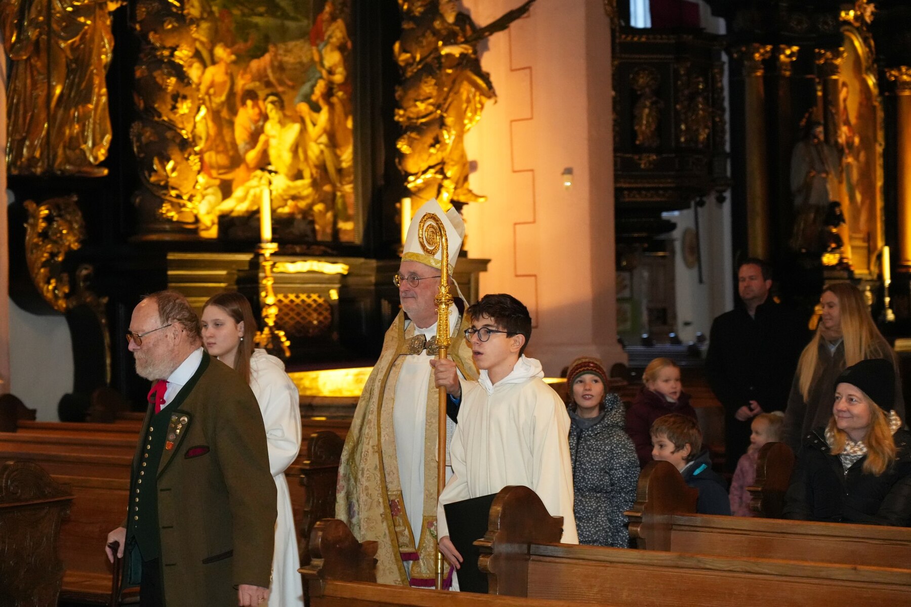 Da es den Pferden, die die Kutsche ziehen, nicht gut ging, kam er heuer zu Fuß zu uns. Vor der Basilika warteten bereits viele Kinder und Erwachsene auf ihn, um ihn freudig zu begrüßen.