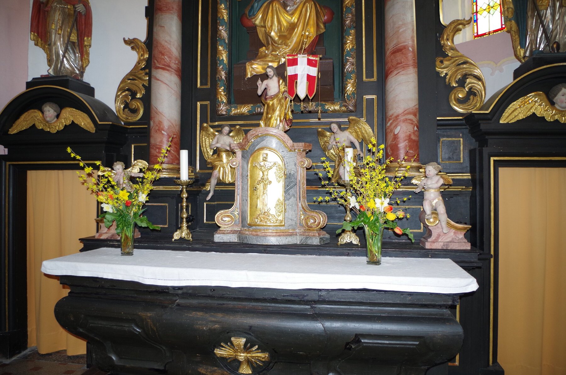 Drinnen in der Kirche war wieder schönster Blumenschmuck.