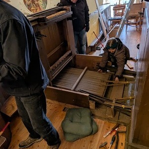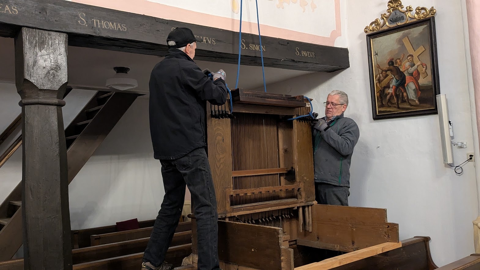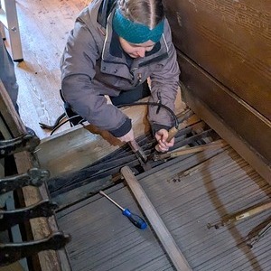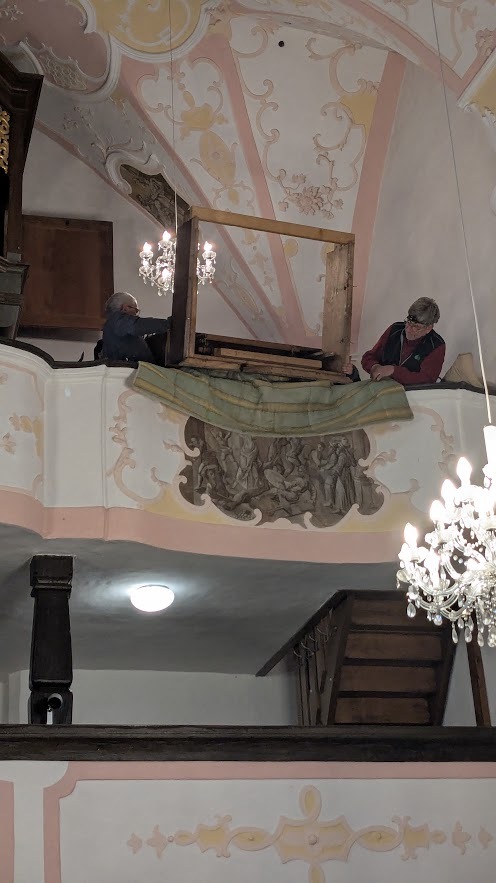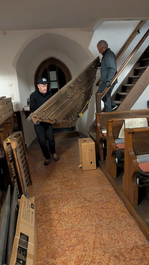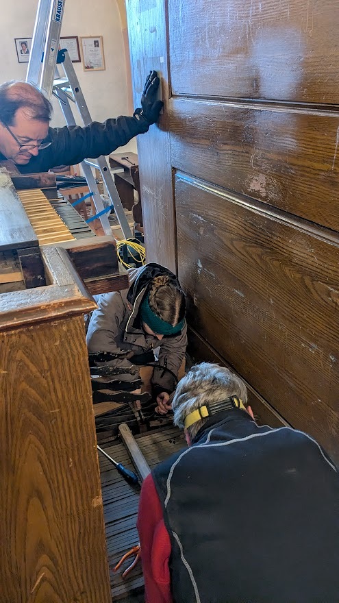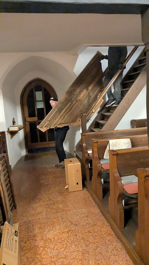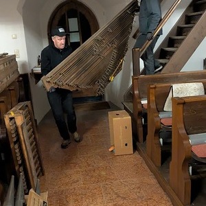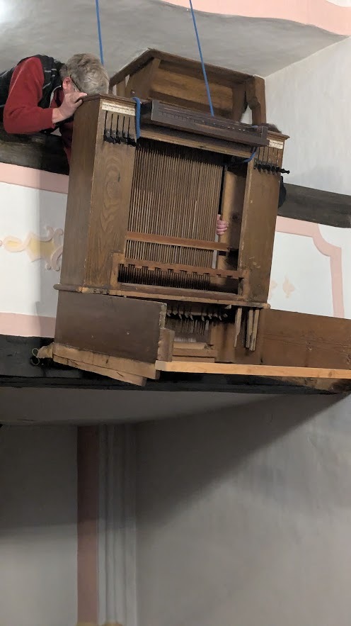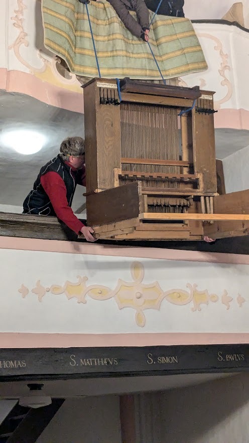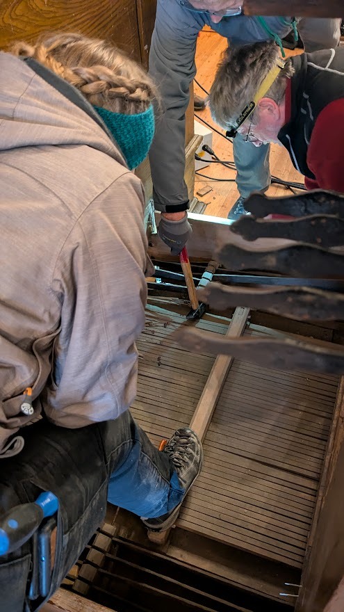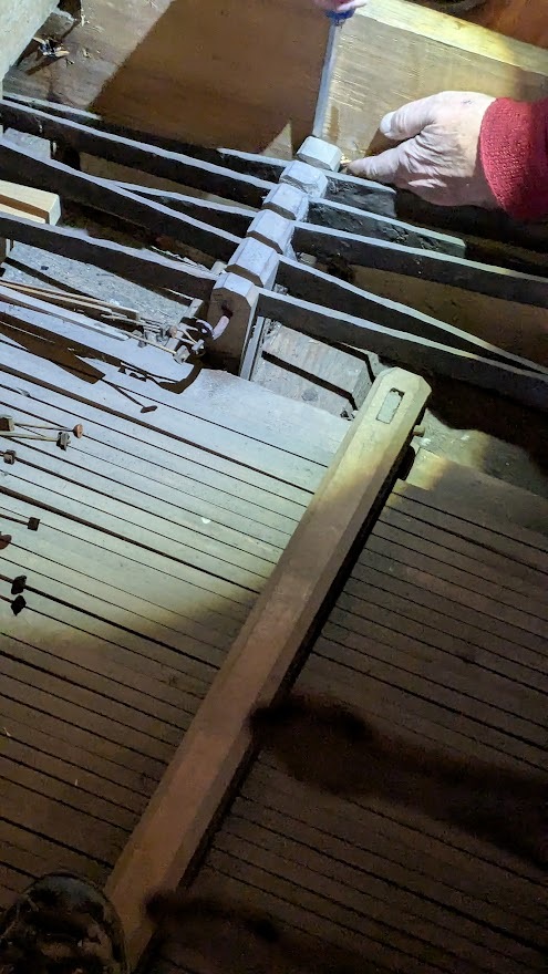 Orgelabbau extra - der 3. Tag, Spieltisch und Wellenbretter