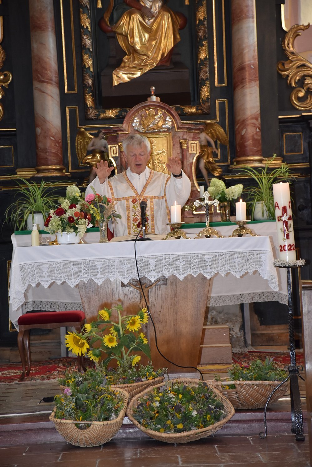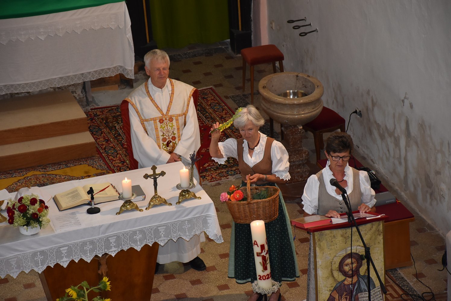 Die Gaben brachten - die "Gabenbereitung" ist ein wichtiges Zeichen in der Hl. Messe - , der Musikkapelle für die Gestaltung der Hl. Messe, den Goldhauben- und Kopftuchfrauen, der Freiwilligen Feuerwehr, der Jungfeuerwehr, den Familien mit Kindern, den Bäuerinnen und Bauern für die Erntekrone, last not least dem PGRat, der wieder ein Rad gestaltete, die Kirche schmückte und die Gesamtorganisation hatte.