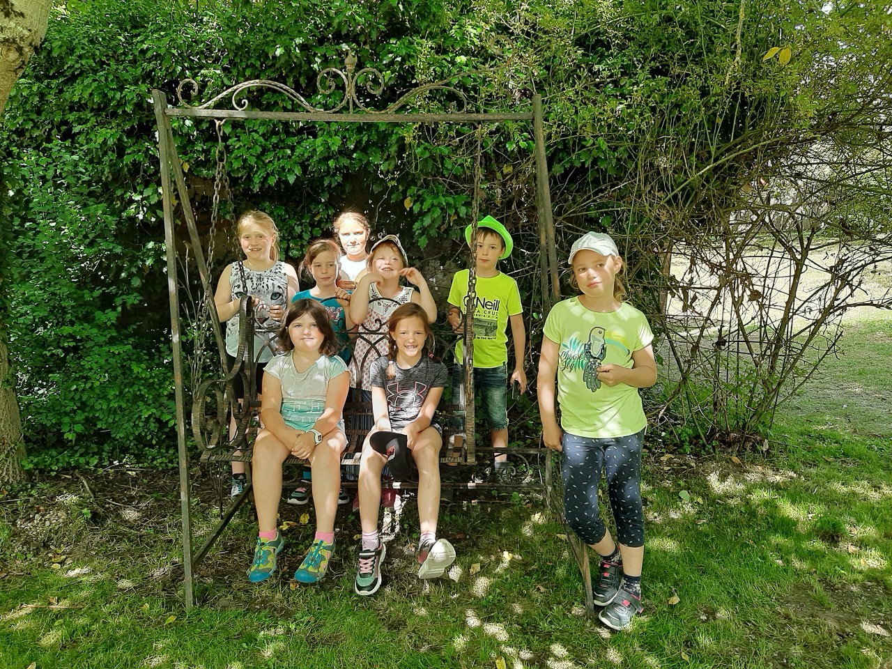 Bei schönstem Wetter und heißen Temperaturen starteten wir im zweiten Panzertal durch den Kobernaußerwald. Am Ausgang des Waldes konnten wir dann bereits den Kirchturm unseres Zieles erblicken. Der Anstieg in der Nachmittagshitze zur Wallfahrtskirche lag aber noch vor uns. Dort angekommen, stärkten wir uns mit einem Eis. Unser Pfarrer und die Religionslehrerin erzählten uns von der Wallfahrtskirche. Anschließend hielten wir eine Andacht in der Kapelle, in der jedes Kind vom Pfarrer gesegnet wurde.