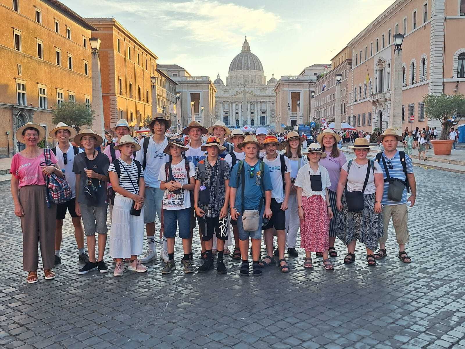 Das Motto der heurigen Wallfahrt ist aus der Bibel dem Alten Testament entnommen und lautet „Mit dir!“ nach Jesaja 41,10.Die zwei Pfarrgemeinden Munderfing und Jeging und Pfaffstätt nehmen die Einladung an und machen sich, zeitgleich mit 40.000 anderen, auf den Weg nach Rom zur Wallfahrten. Sie senden uns mit ein paar eindrucksvolle Bildern schöne Grüße in die einzelnen Pfarrgemeinden.Die Gruppe erlebt ein abwechslungsreiches Programm in Rom. Ein besonderer Höhepunkt ist die Papstaudienz am Petersplatz an der alle 40.000 Ministrant:innen gemeinsam teilnehmen. Weiters wird zu einem Österreicherfest eingeladen, zu einem Katakombenbesuch, einem Tag am Meer, etc. Das Wochenprogramm bietet auch Platz für individuelle Besichtigungen als Gruppe wie zum Beispiel das Kolosseum, die Kuppel am Petersdom etc.Die Ministrant:innenwallfahrt findet alle 4 Jahre statt. Jetzt war eine längere Pause, die letzte organisierte Reise war 2018. Schön, dass die Pfarrgemeinden Munderfing und Pfaffstätt heuer diese Chance nutzen und mit 17 Ministrant:innen dabei sind.