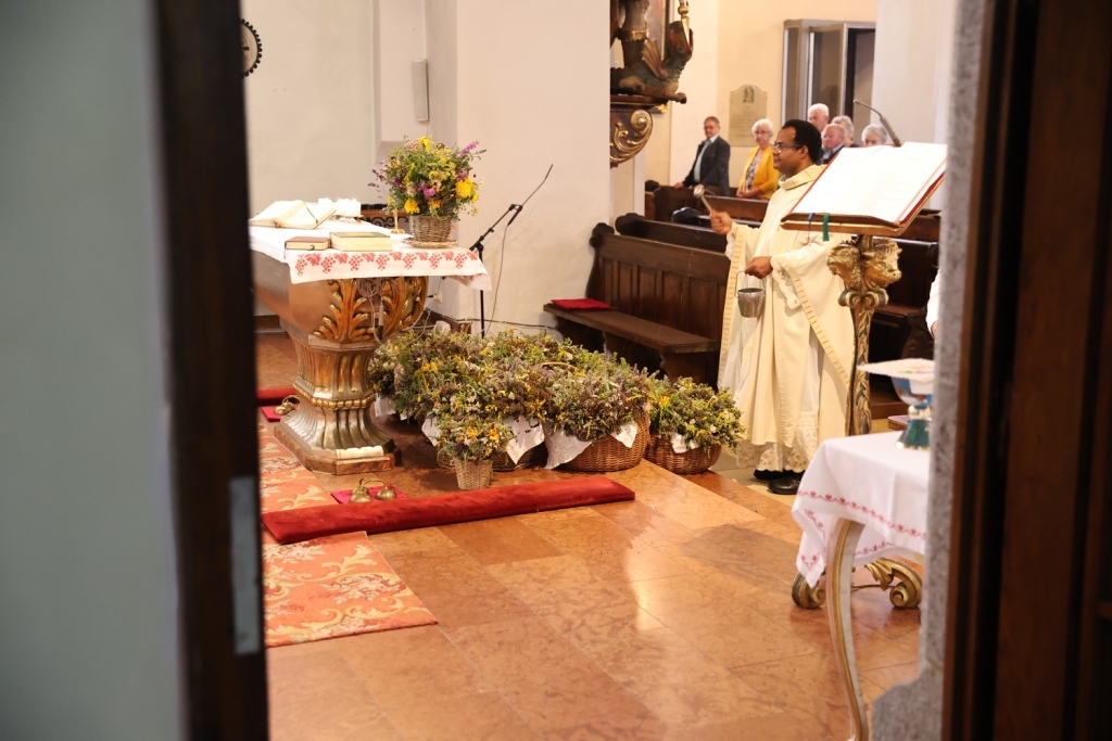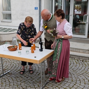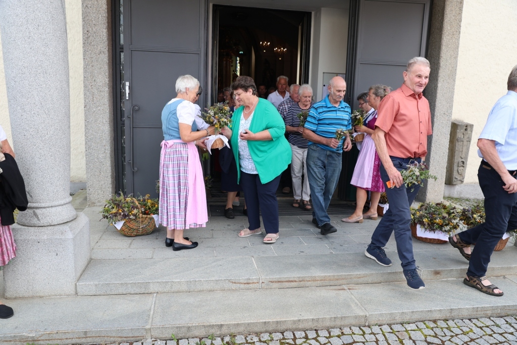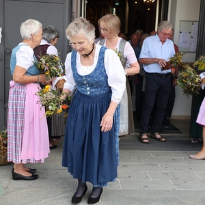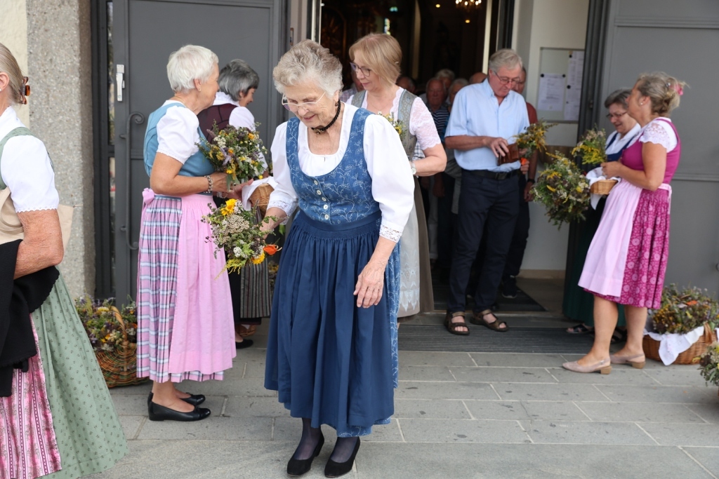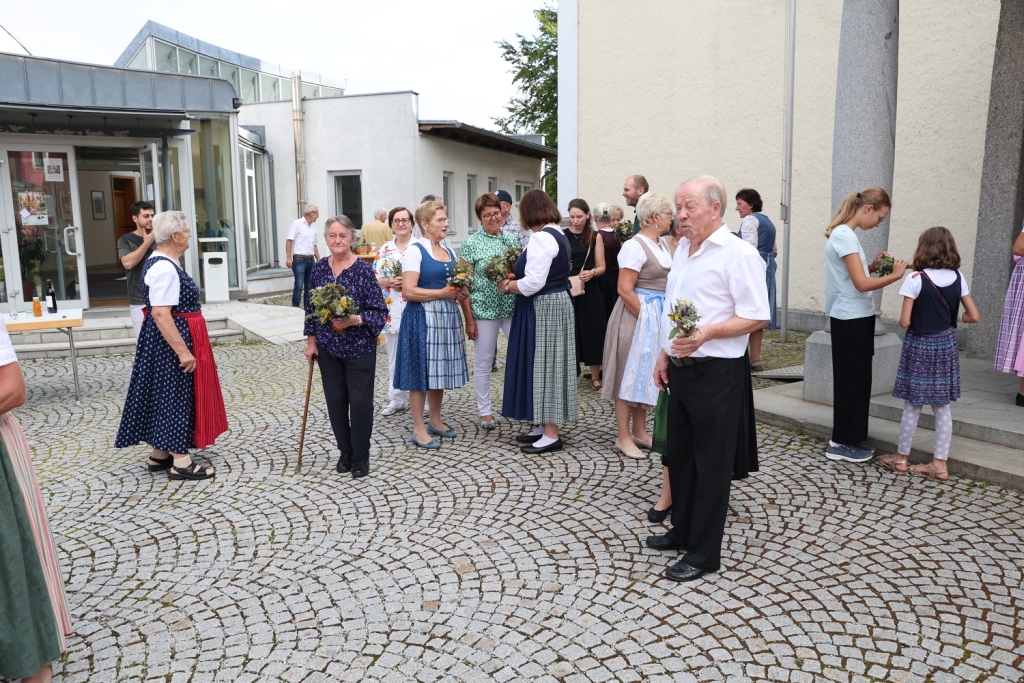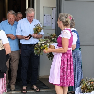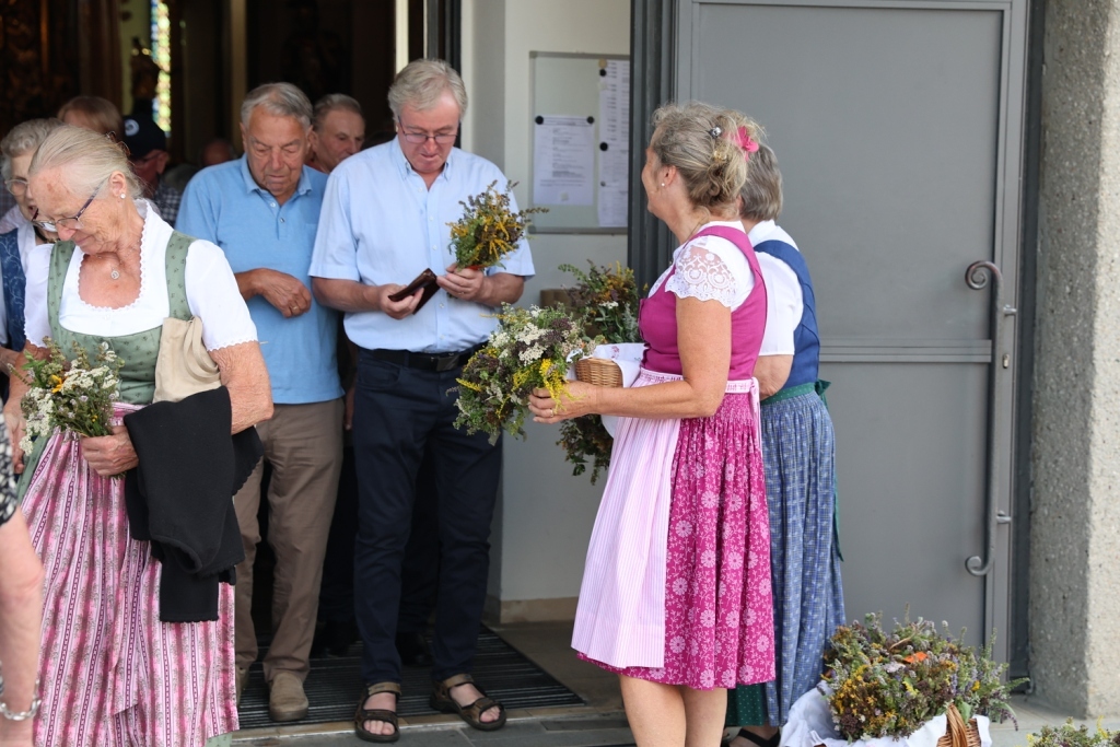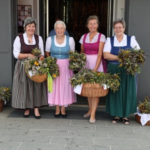 Wie jedes Jahr banden die Goldhaubenfrauen unzählige wohlduftende Kräuterbüscherl, die im Anschluß der Messe an die Besucher verteilt wurden. Am Kirchenplatz konnten sich die Messbesucher anschließend bei einer kleinen Agappe stärken. Die Pfarre Münzkirchen bedankt sich recht herzlich für die Gestaltung bei der Goldhaubengruppe!