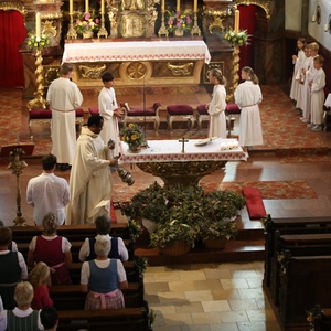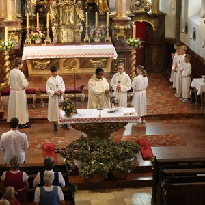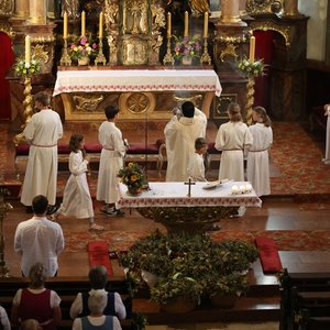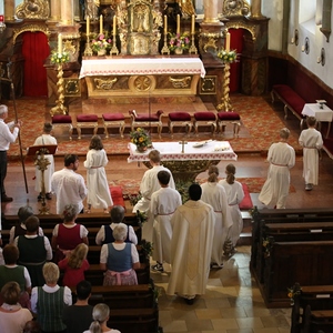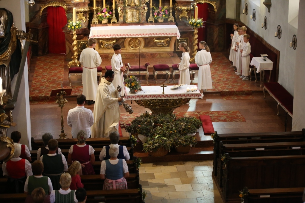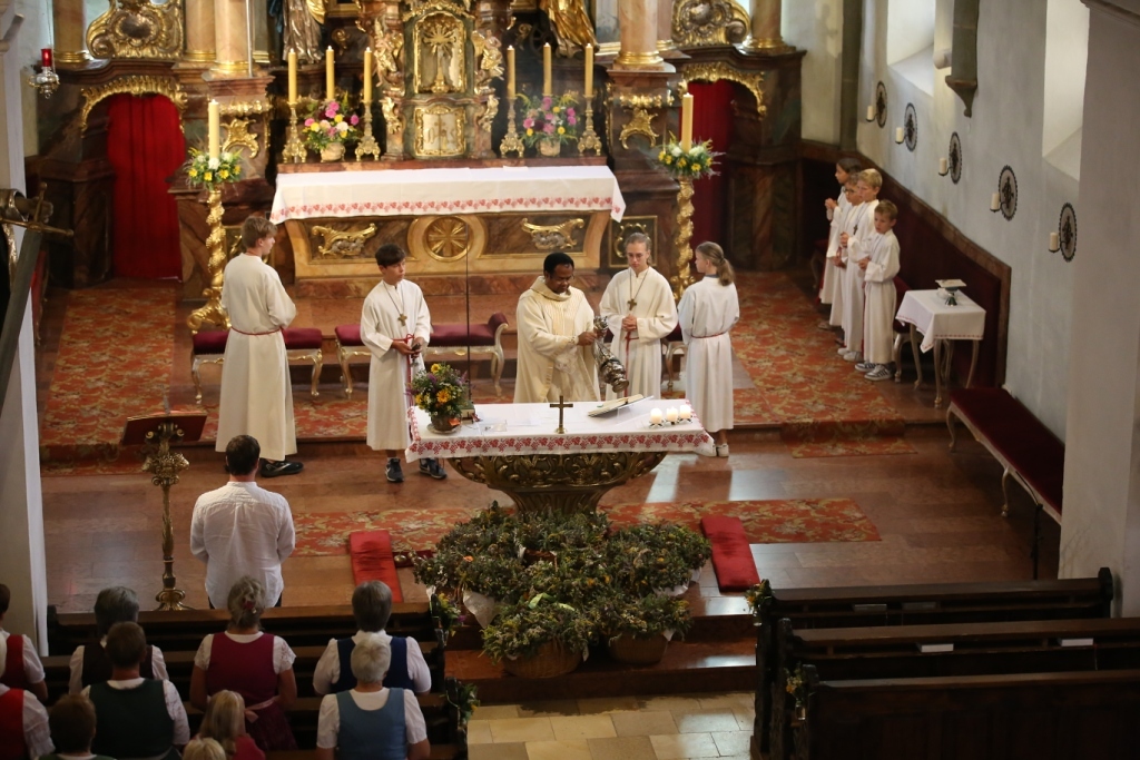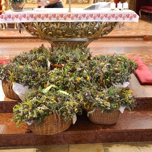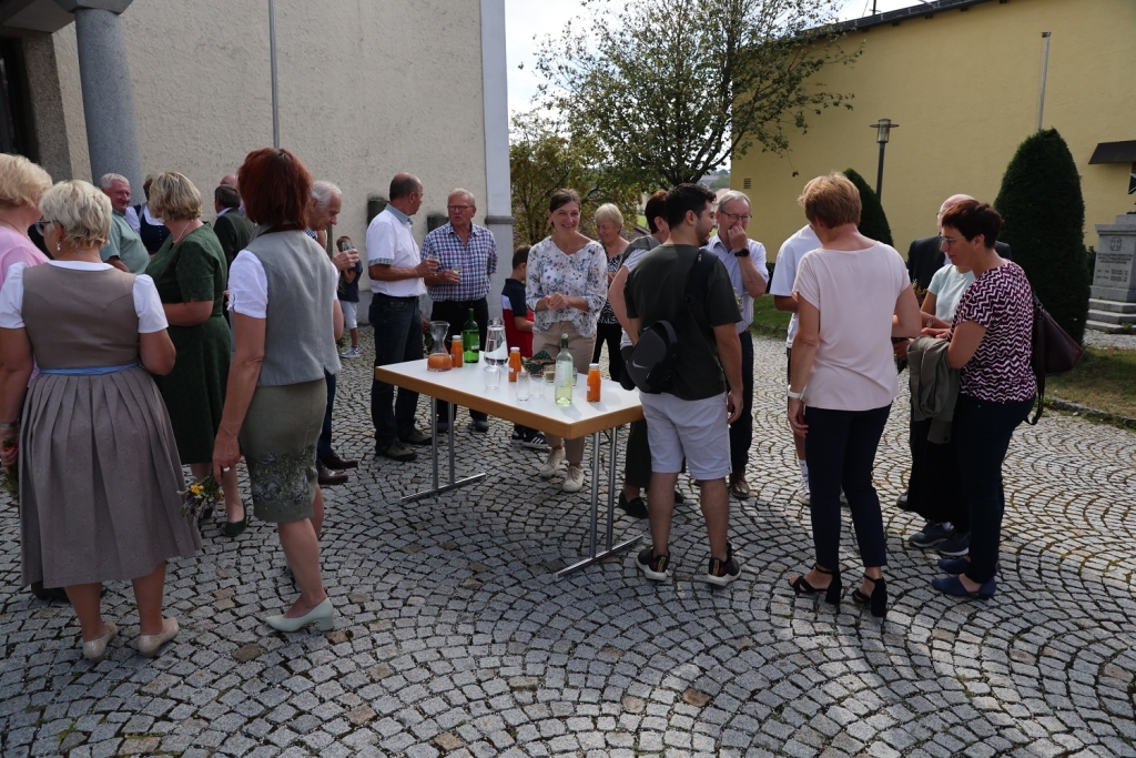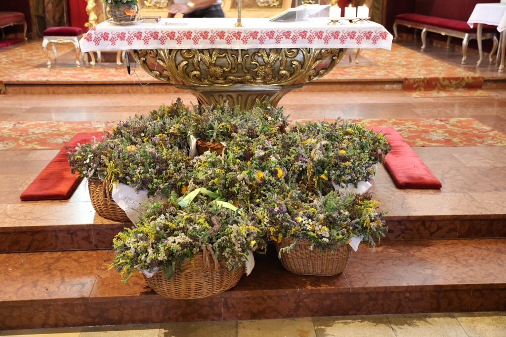 Wie jedes Jahr banden die Goldhaubenfrauen unzählige wohlduftende Kräuterbüscherl, die im Anschluß der Messe an die Besucher verteilt wurden. Am Kirchenplatz konnten sich die Messbesucher anschließend bei einer kleinen Agappe stärken. Die Pfarre Münzkirchen bedankt sich recht herzlich für die Gestaltung bei der Goldhaubengruppe!
