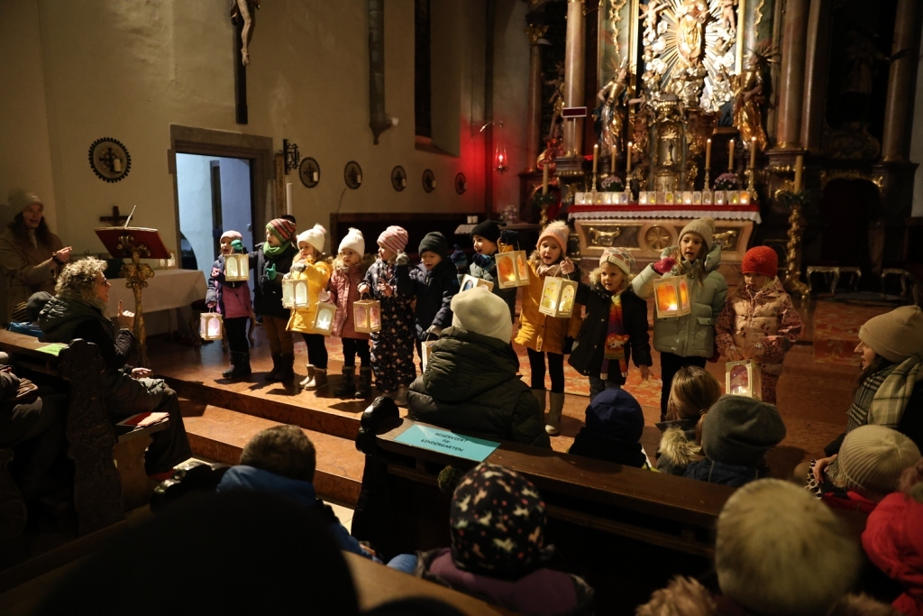 Nach langen Üben feierten die Kindergartenkinder das Martinsfest. Die Schulanfänger führten für die Kirchenbesucher vor, wie es damals war.