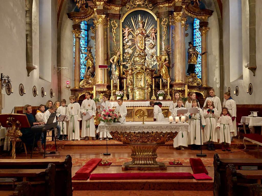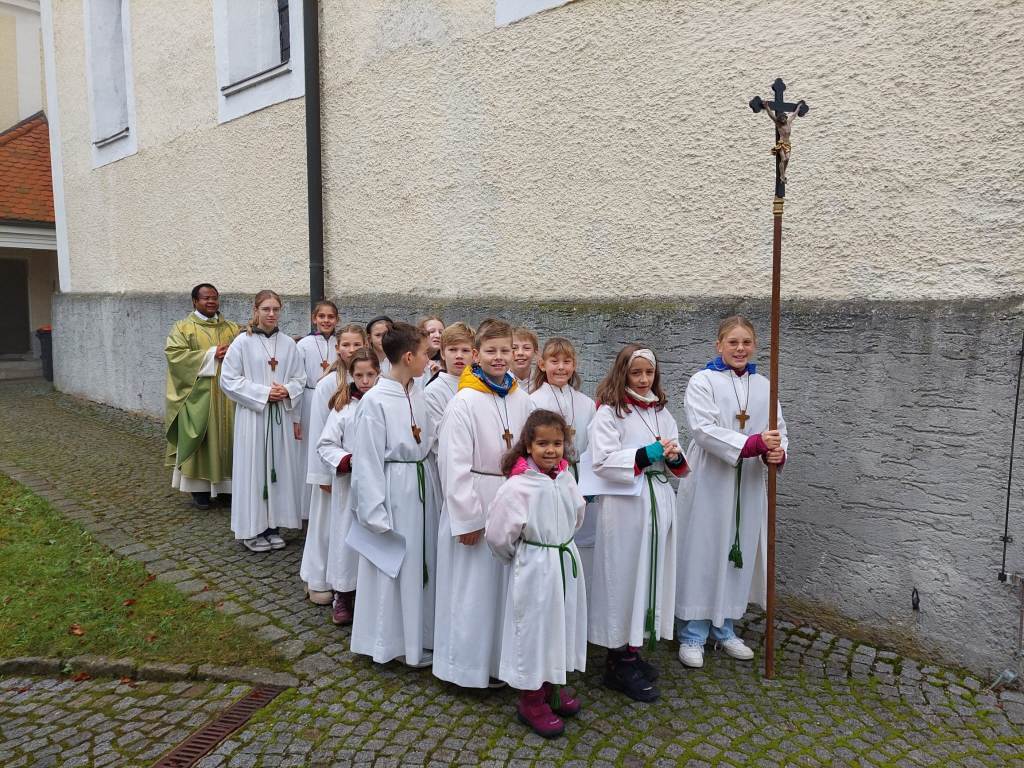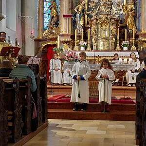 Der Gottesdienst wurde verbunden mit der Aufnahme der neuen Ministranten. Zugleich wurden auch jene Ministranten verabschiedet, die ihren Dienst beendet hatten. Die Messe wurden von den Minis gestaltet. Im Anschluß der Messe wurden ihnen ein kleines Geschenk überreicht.