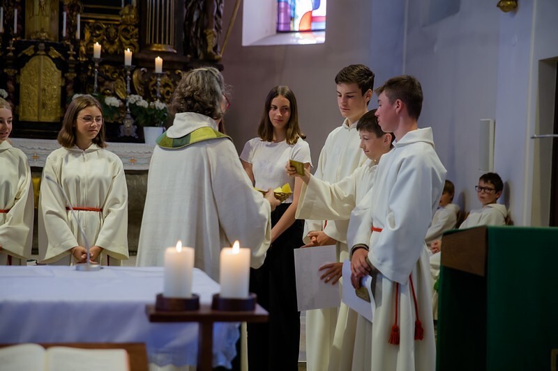 Die vor einem Jahr zum Ministrieren begonnen haben, wurden offiziell in die Gemeinschaft der Minis aufgenommen und die, die ihren Dienst im letzten Jahr beendet haben, wurden bedankt.