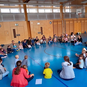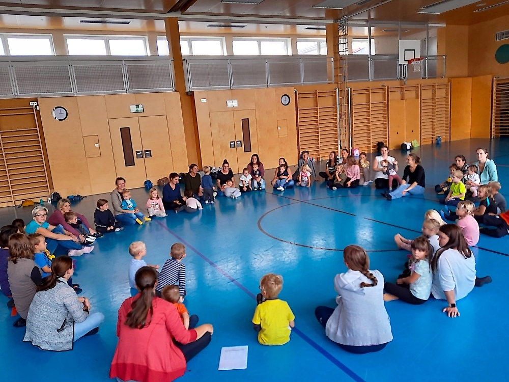 Dienstags treffen sich Eltern und Kinder bis zum Volksschulalter im Turnsaal zum Eltern-Kind-Turnen. Gerade in der kühleren Jahreszeit toben sich die Kleinen mit Begeisterung im Turnsaal der NMS aus.
