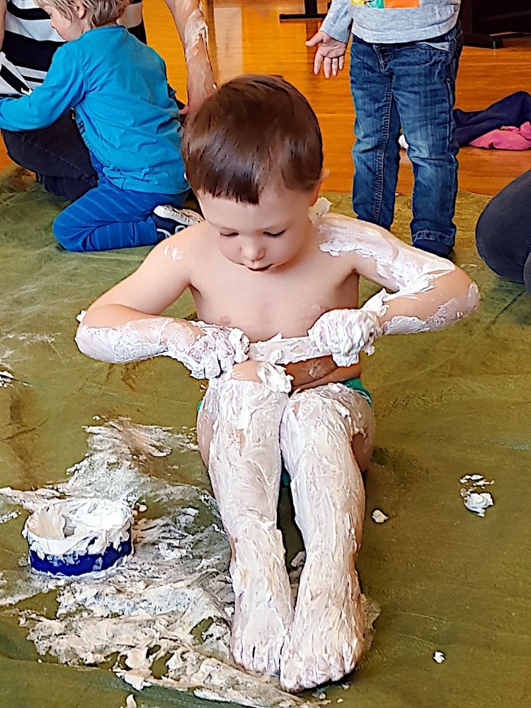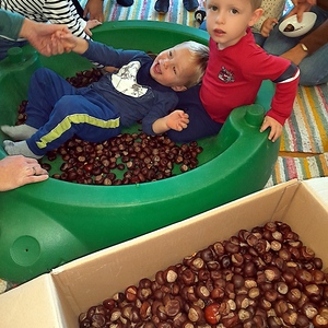Es wird gesungen und gespielt, geastelt und mit verschiedene Materialien experimentiert. Auch der Austausch zwischen den Eltern ist ein wichtiger Bestandteil der Treffen. So manches Problem wird in dieser vertrauten Runde besprochen und gelöst und jeder profitiert von den Erfahrungen der anderen Mütter.