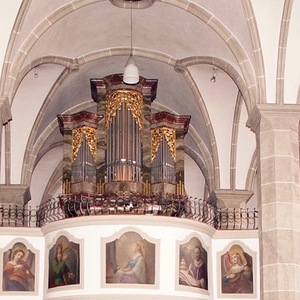 Nach dem Marktbrand vom 2. März 1753, bei dem die Kirche schwer beschädigt wurde, musste die Innenausstattung völlig neu angeschafft werden. Nach der Wiedererrichtung des Altars zwischen 1765 bis 1776‚wurde auch die Orgel neu errichtet. Bei der Restaurierung im Jahre 1985 wurde durch die Orgelbauanstalt Kögler aus St. Florian bei Linz die Technik völlig neu hergestellt. Das alte Gehäuse wurde von Restaurator Fritz Litzibauer aus Höllberg renoviert.