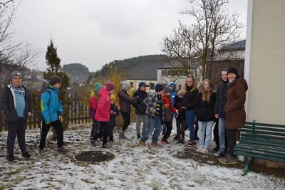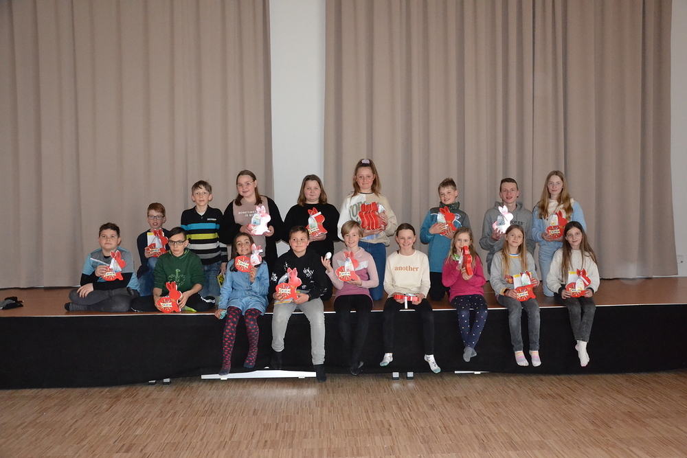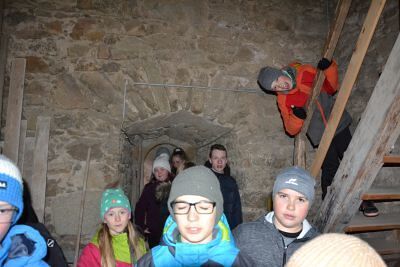 Bei richtigem Aprilwetter mit Schnee und Wind machten sich unsere Minis anschließend auf die Suche nach einer Hasenbande, die einen wahren Osterschatz bewachte. Die Hasen waren den Minis immer ein paar Hopser voraus – egal ob im Pfarrgarten, im Weinkeller, beim Musikheim oder in der Sakristei. Doch schließlich haben die Minis die Hasenbande im Kirchturm eingeholt.